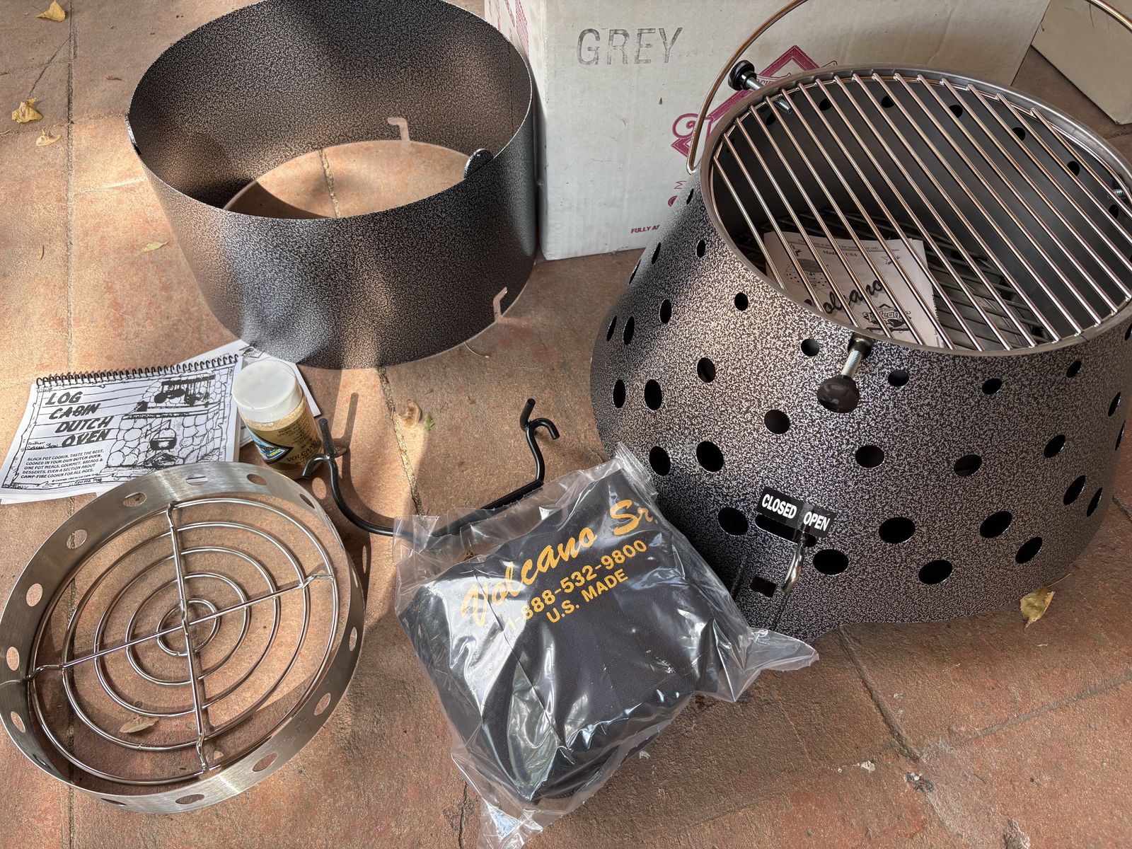 I have an older model Volcano grill that is still in the box. There is also an accessory box that has a storage bag, trivet, handy ring, handy handle, draft ring and cook book. The price is for everything together. See my other ads for jewelry, artwork, home decor and more.