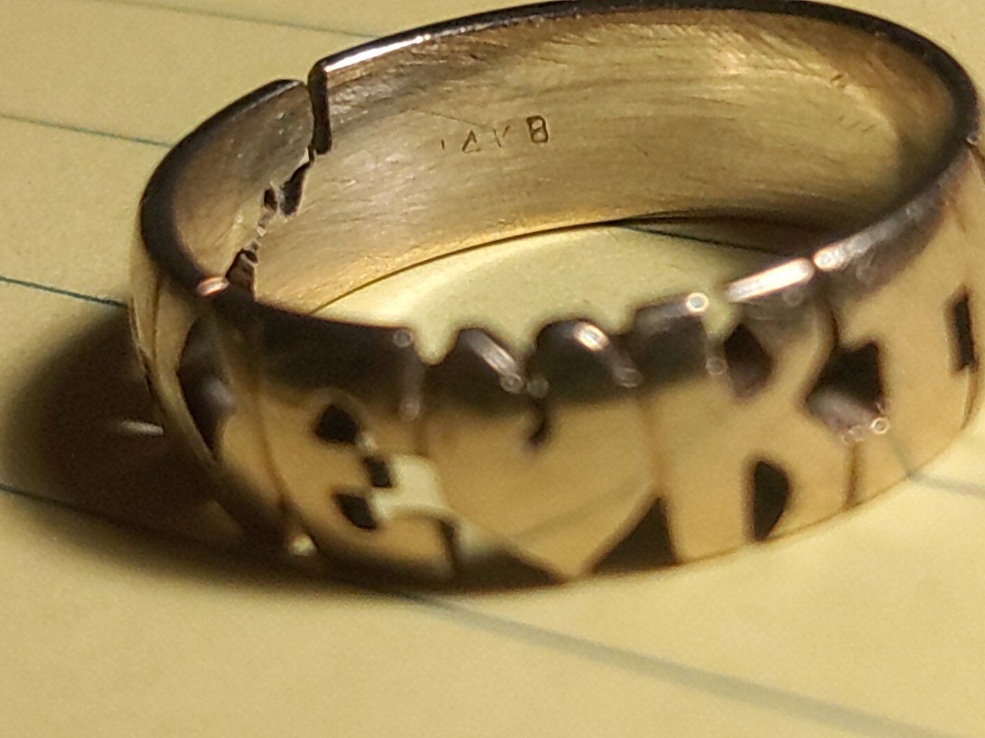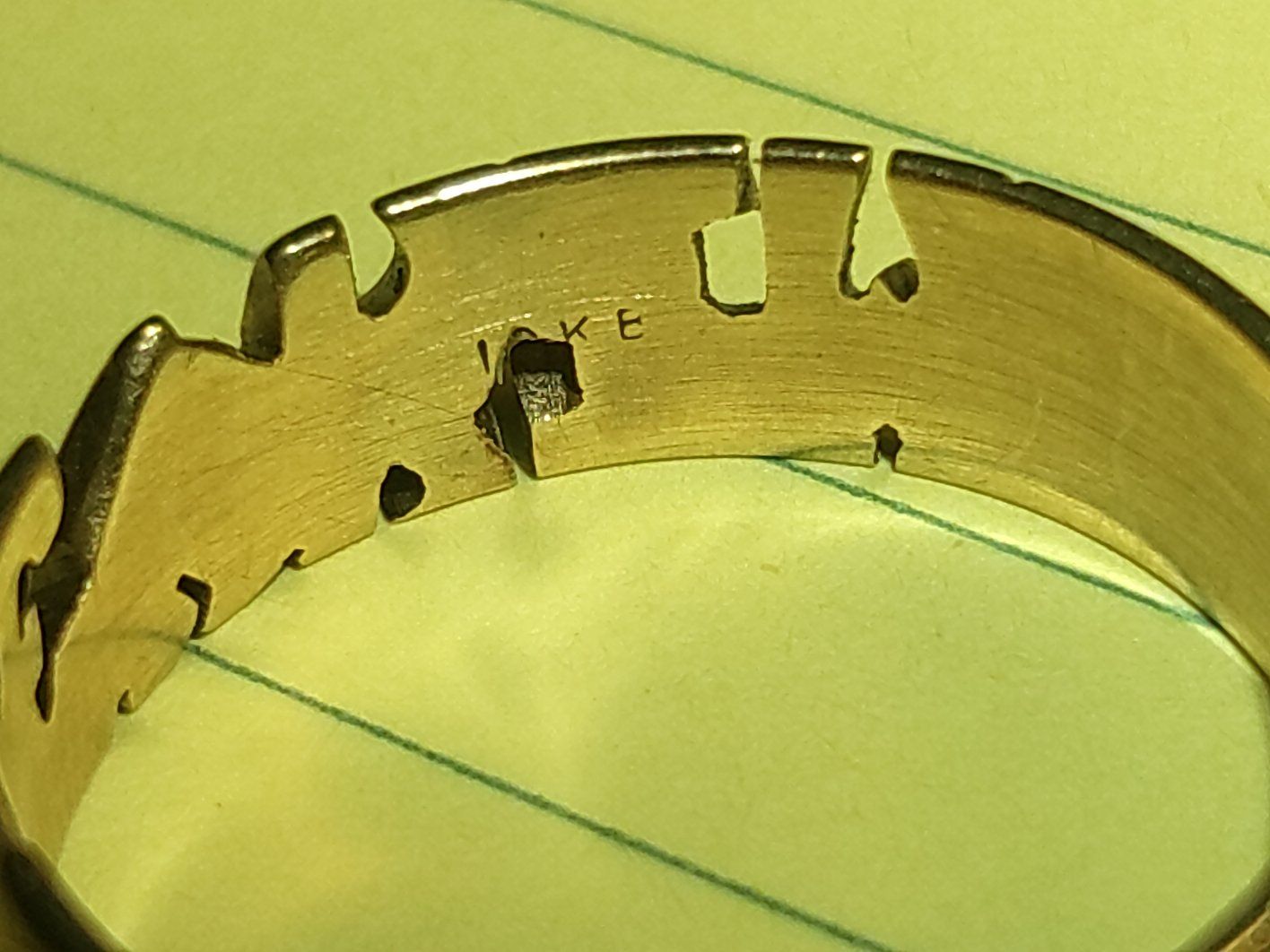Steve "Heart" Kim carved into these rings. These are 14k gold plated his and hers gold rings.