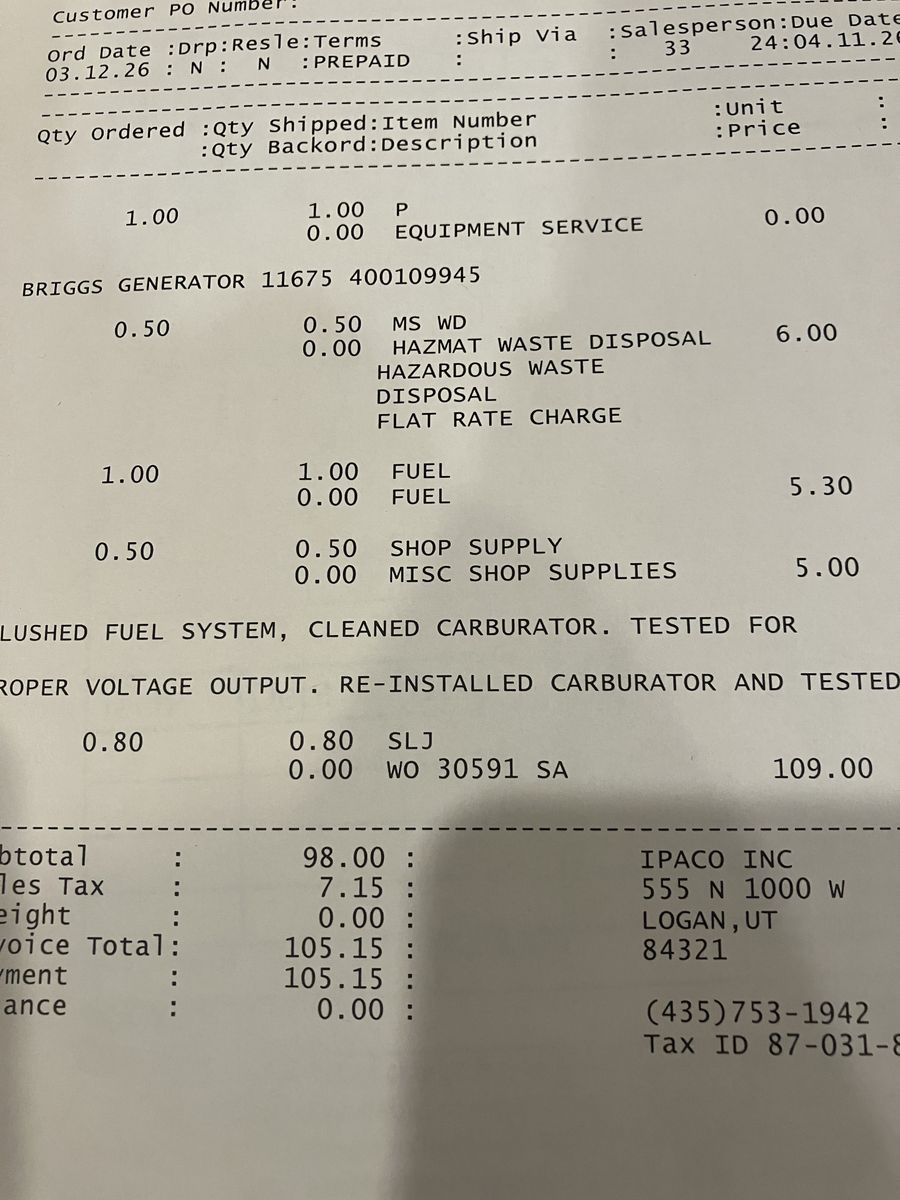 Very good condition. Kept for emergency and used for odd jobs. Hardly used. Just had Ipaco Inc. go through it and checked it out and it is running good. See receipt in pictures.