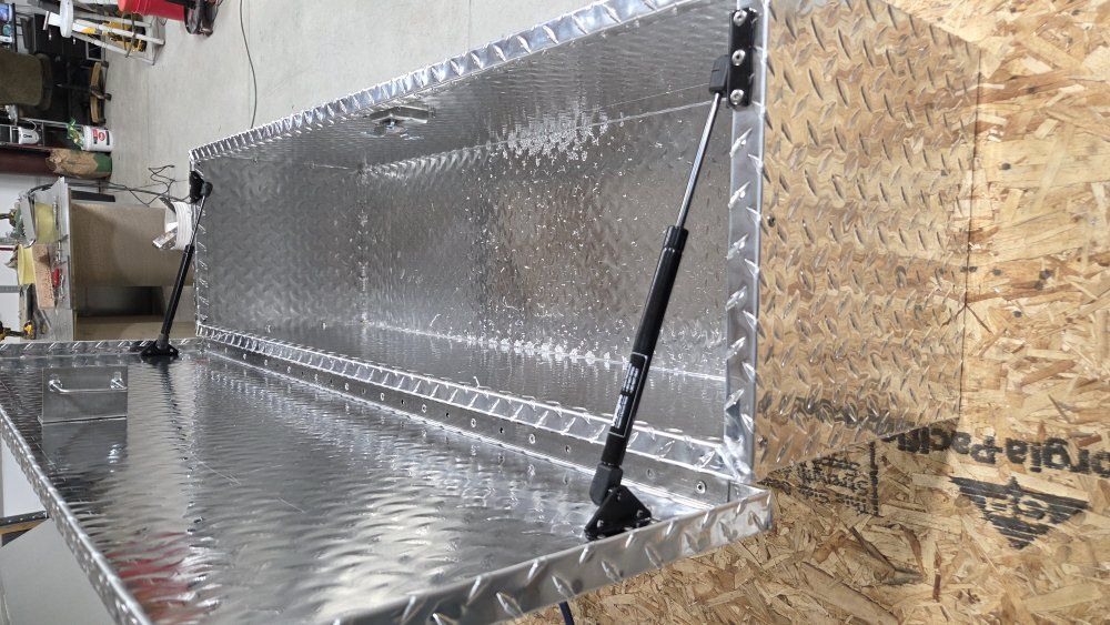 PayPalUTV toolbox this one is 52" wide x 14 x deep x 14" tall gas shocks, locking paddle handle latch
