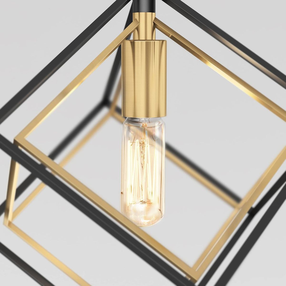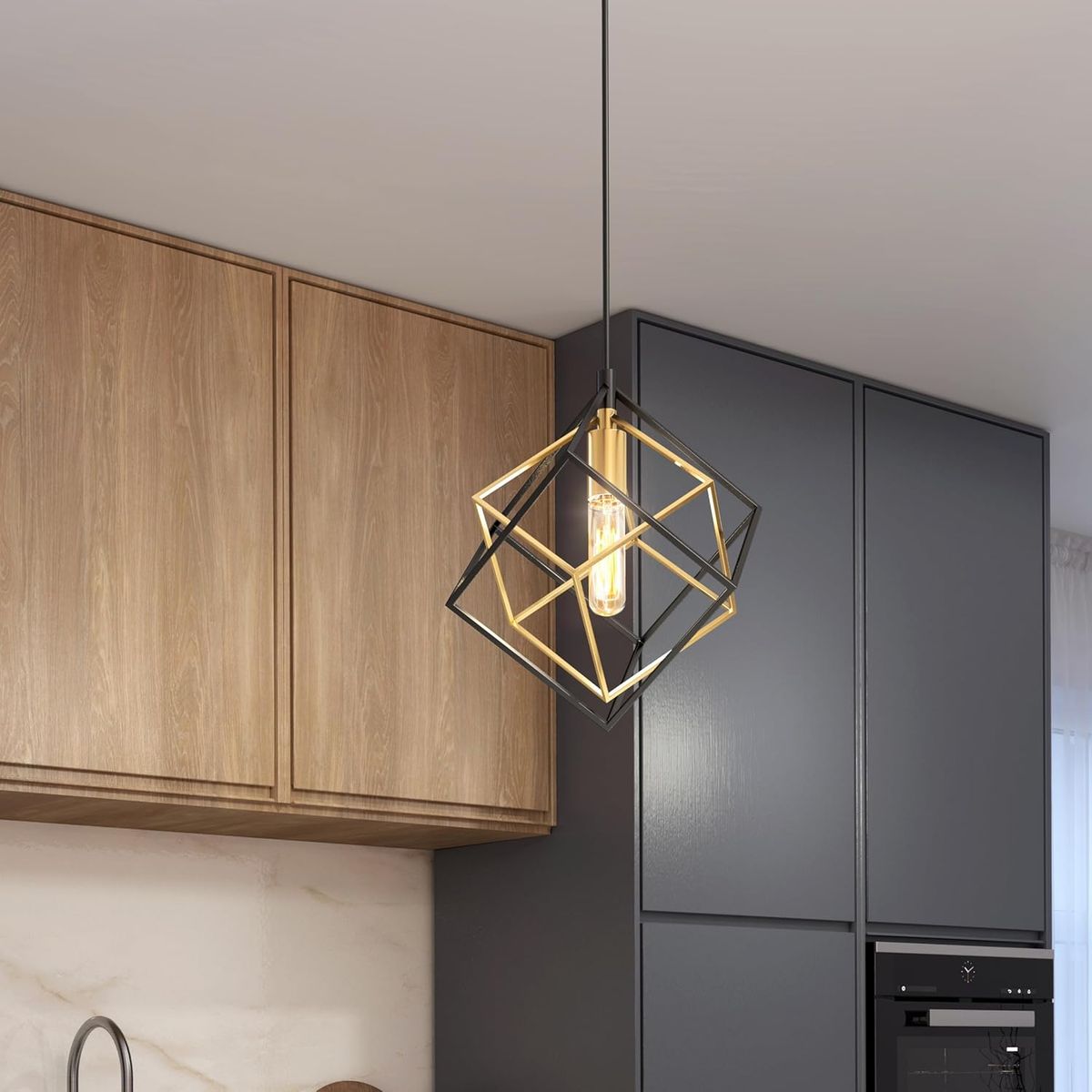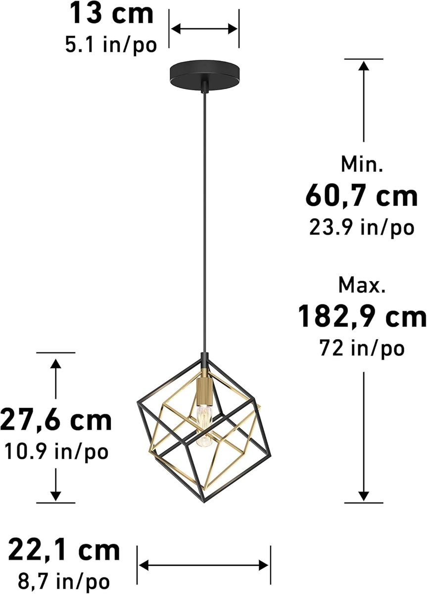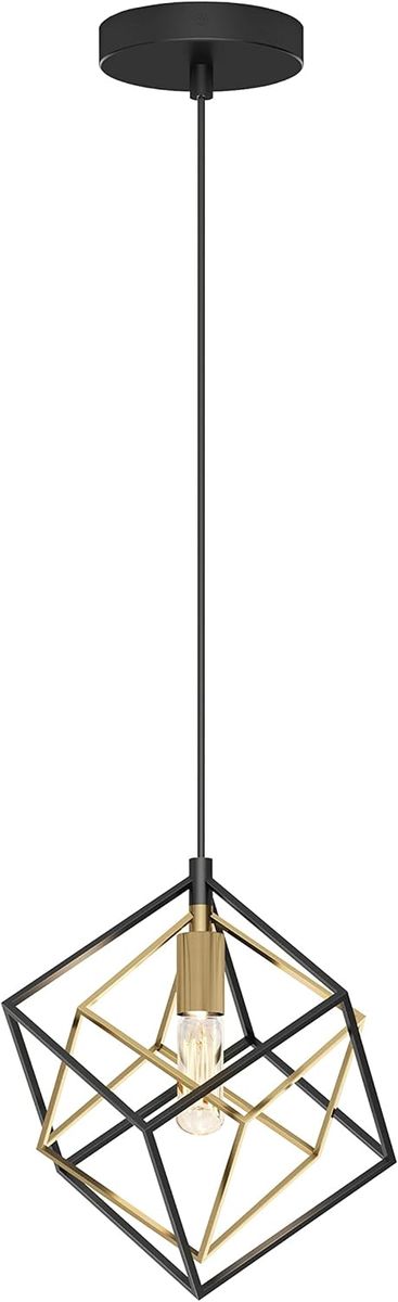 ApplePayartika Imperium 25W 1-Light Modern Mid-Century Pendant Light Fixture, Black and Gold Finish - Geometric Kitchen Island Light, Made of Steel, Bulb Not Included