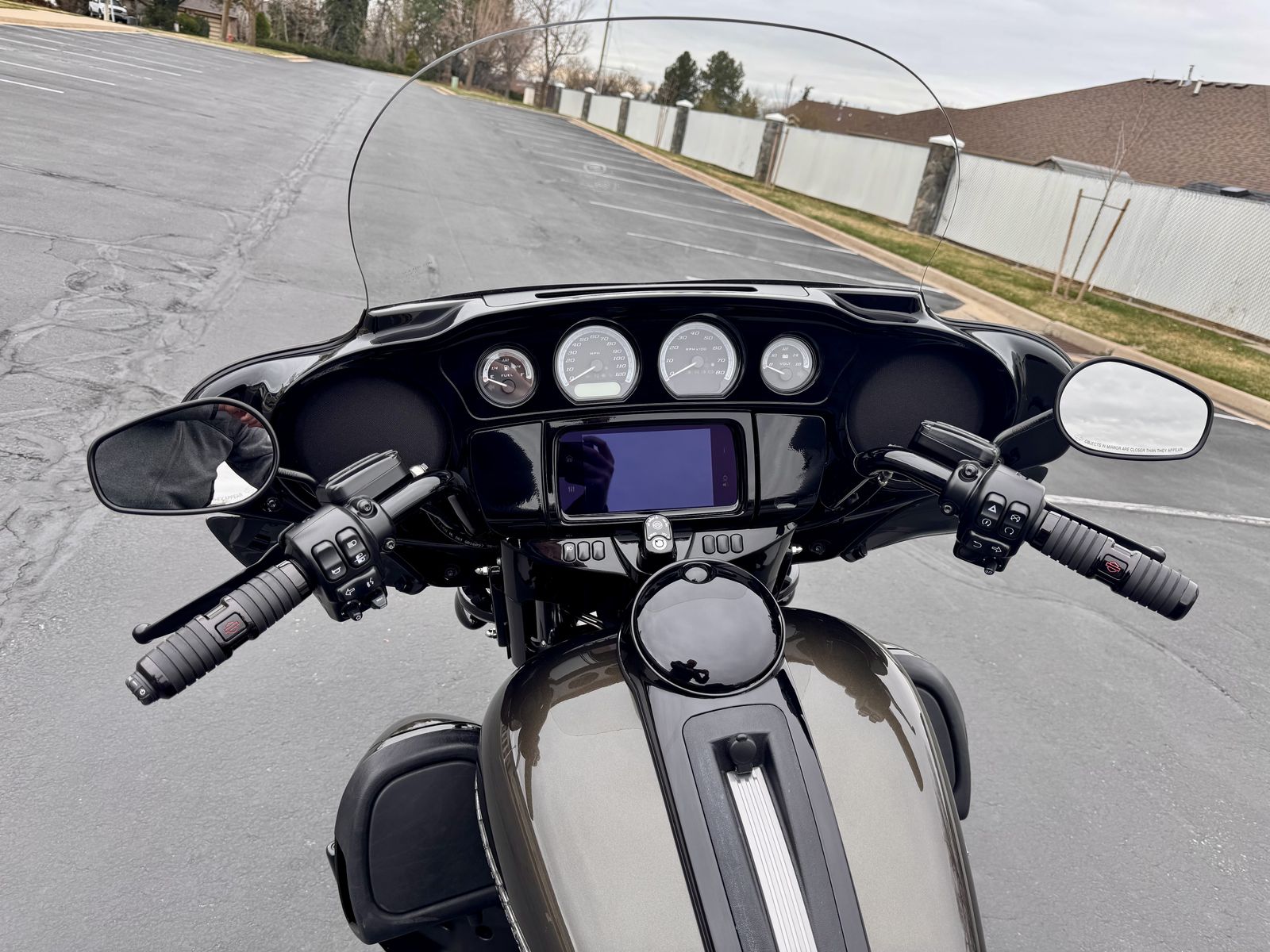 Touchscreen + handlebar controls for settings, volume, etc.