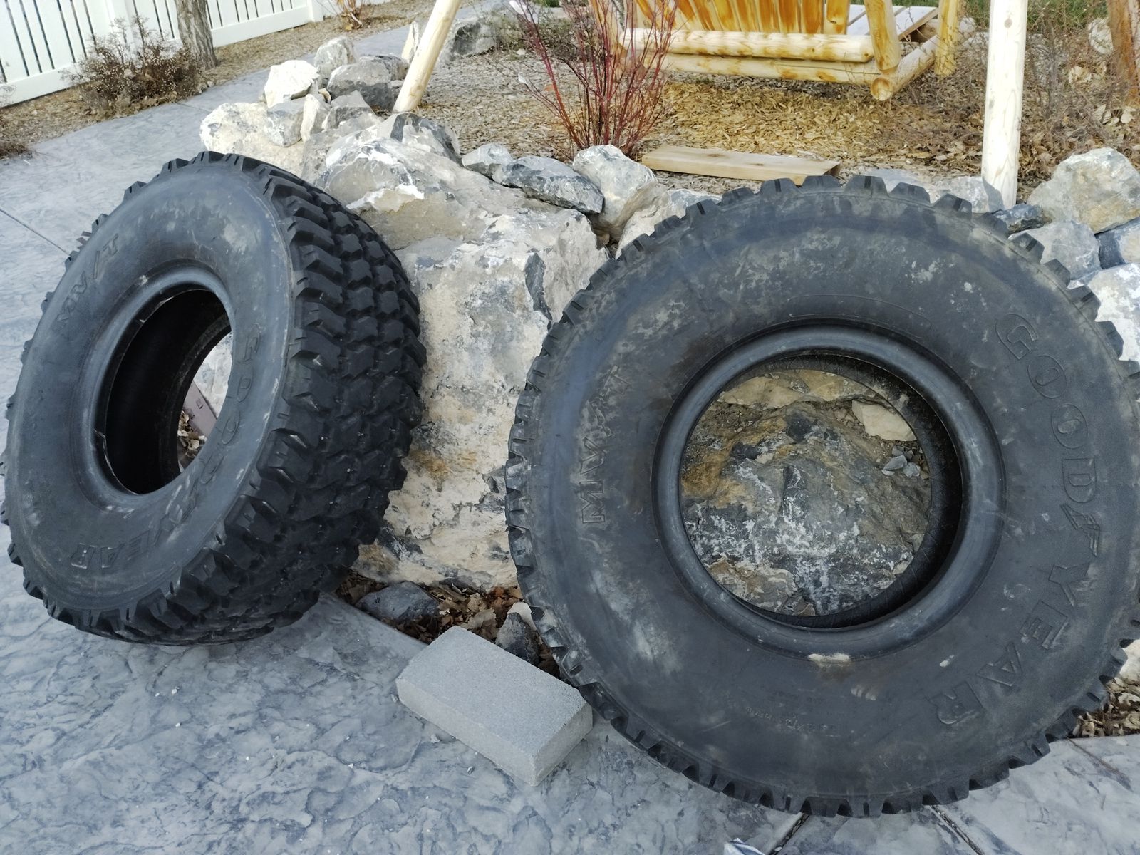 PayPalI have three tires total. They look really good, but there is some less noticeable damage to each of them to the point that the shop I took them to would not mount them for safety reasons. Therefore, unless you know what you're doing, these are probably only suitable to mount on low speed vehicles like farm equipment or use for non-vehicle purposes like tire flipping/exercise, playgrounds, a small planter box, or the ultimate tire swing. They are 210 pounds each.