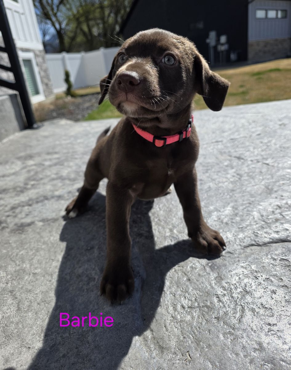 9 weeks old Silver/Chocolate Lab mix Social, sweet, and full of puppy energy