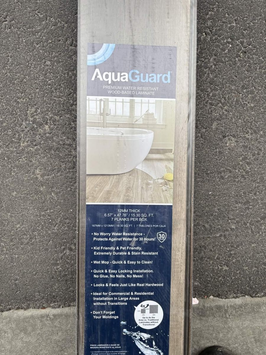 aquaguard premium water resistant wood based laminate 12mm thick 6.57 by 47.76 7 planks