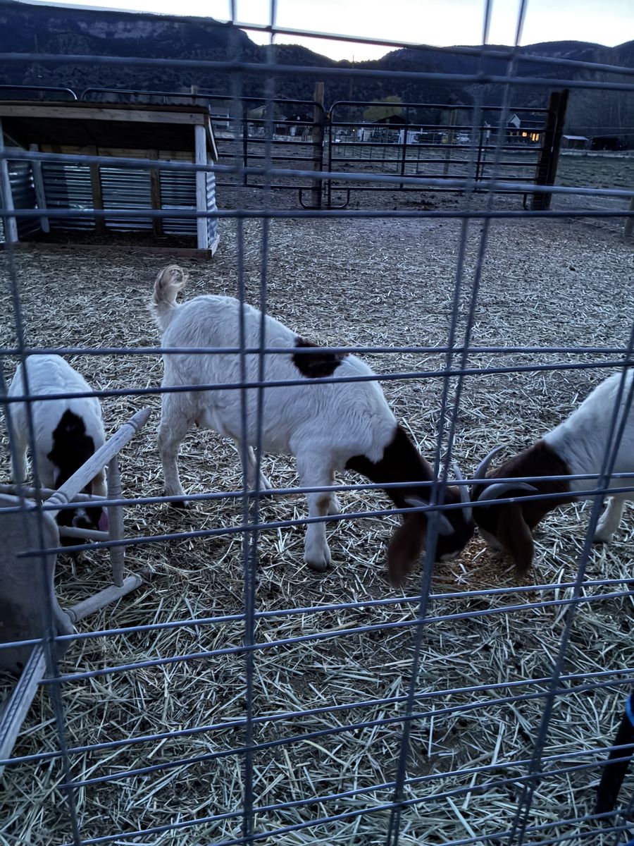 The doe with the spot on her back had triplets this year and twins last year. She did lose all 3 due to kidding in the cold temp. Raised the twins great though. 3yrs old