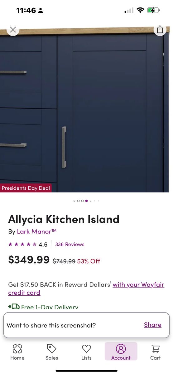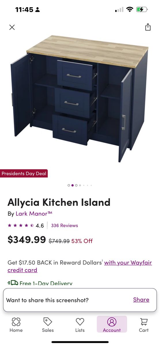 ApplePayBrand new inbox, navy blue wood island with storage and seating