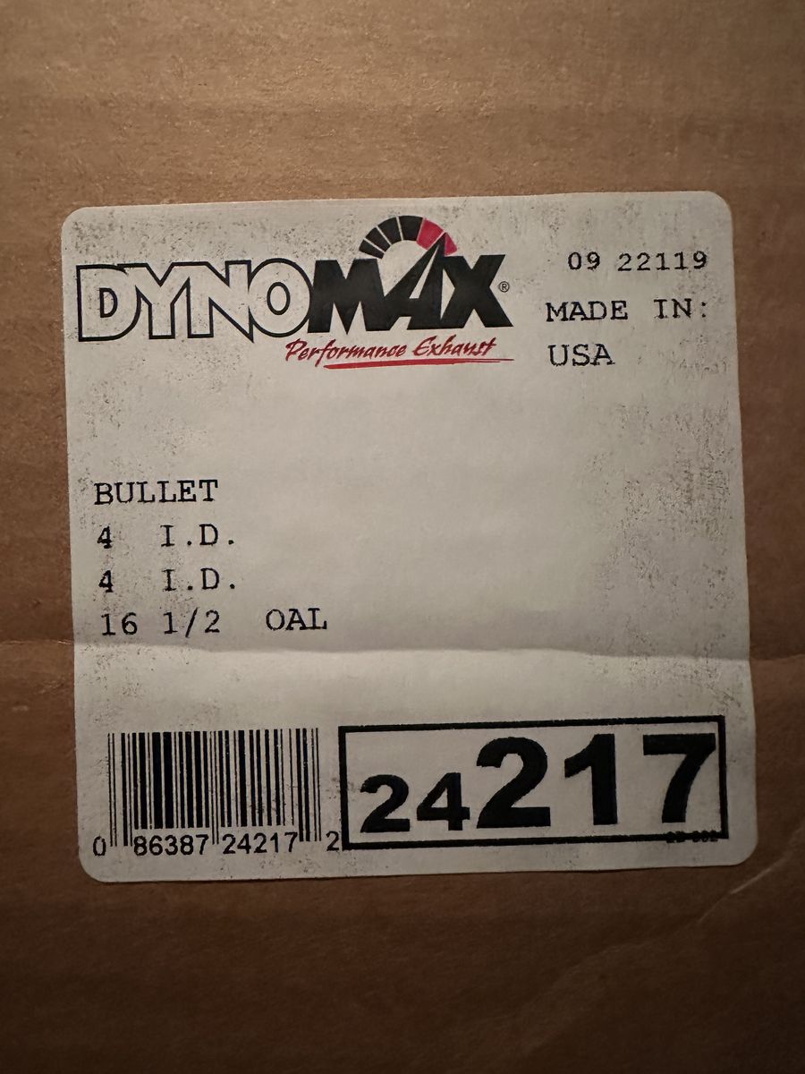 2 DynoMax Race Bullet Mufflers. Bought these for my project truck but ended up not needing them, still new in box. Sold together as a set only.