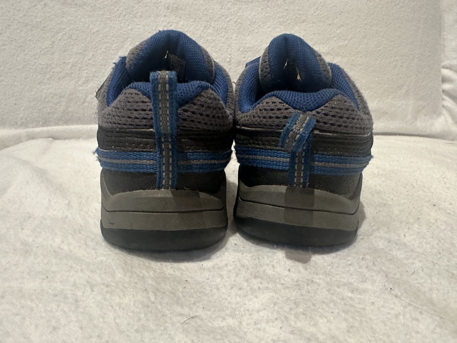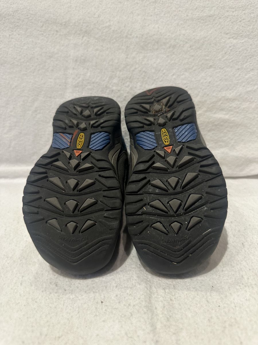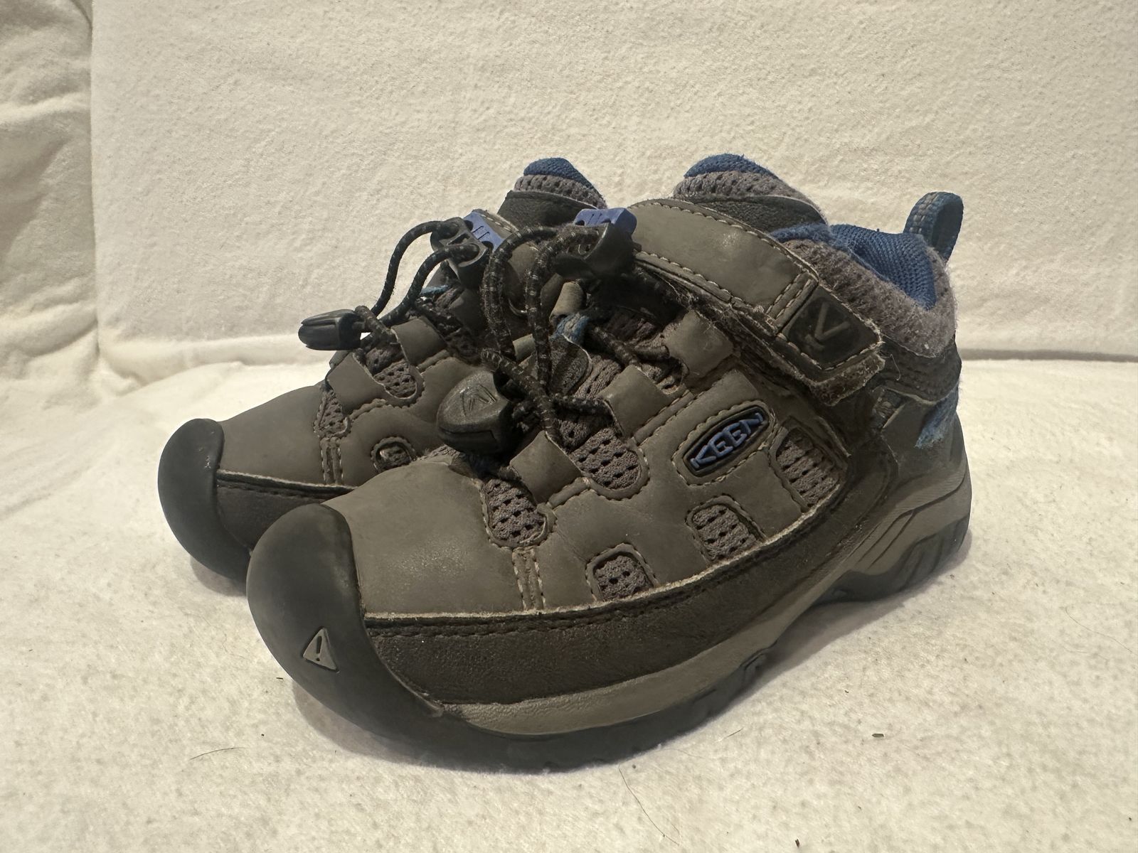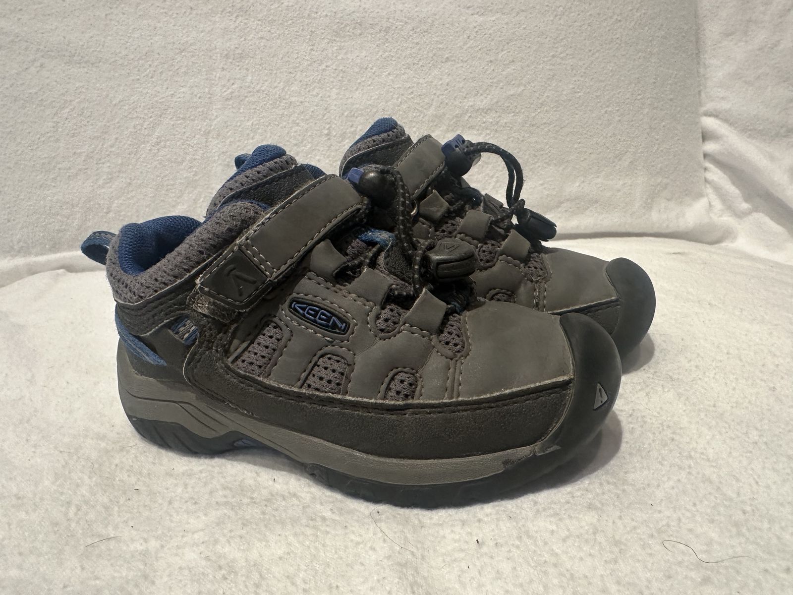 Keen toddler, size 8, gray with blue trim, mesh, and leather with the elastic laces and a Velcro strap at the top. These are in good condition, see photos for details. I take cash or Venmo, but cash is preferred. Text is best. 801-201-4446. Check out my other ads for additional sizes and styles.