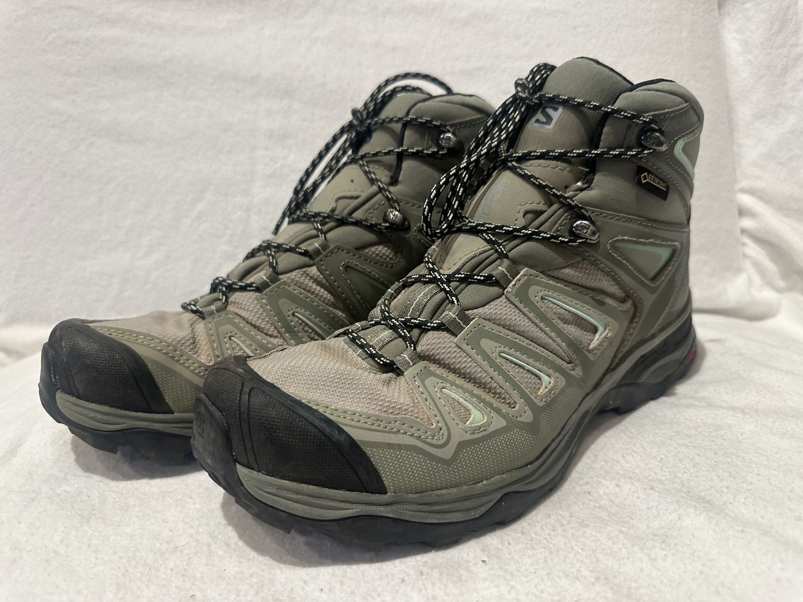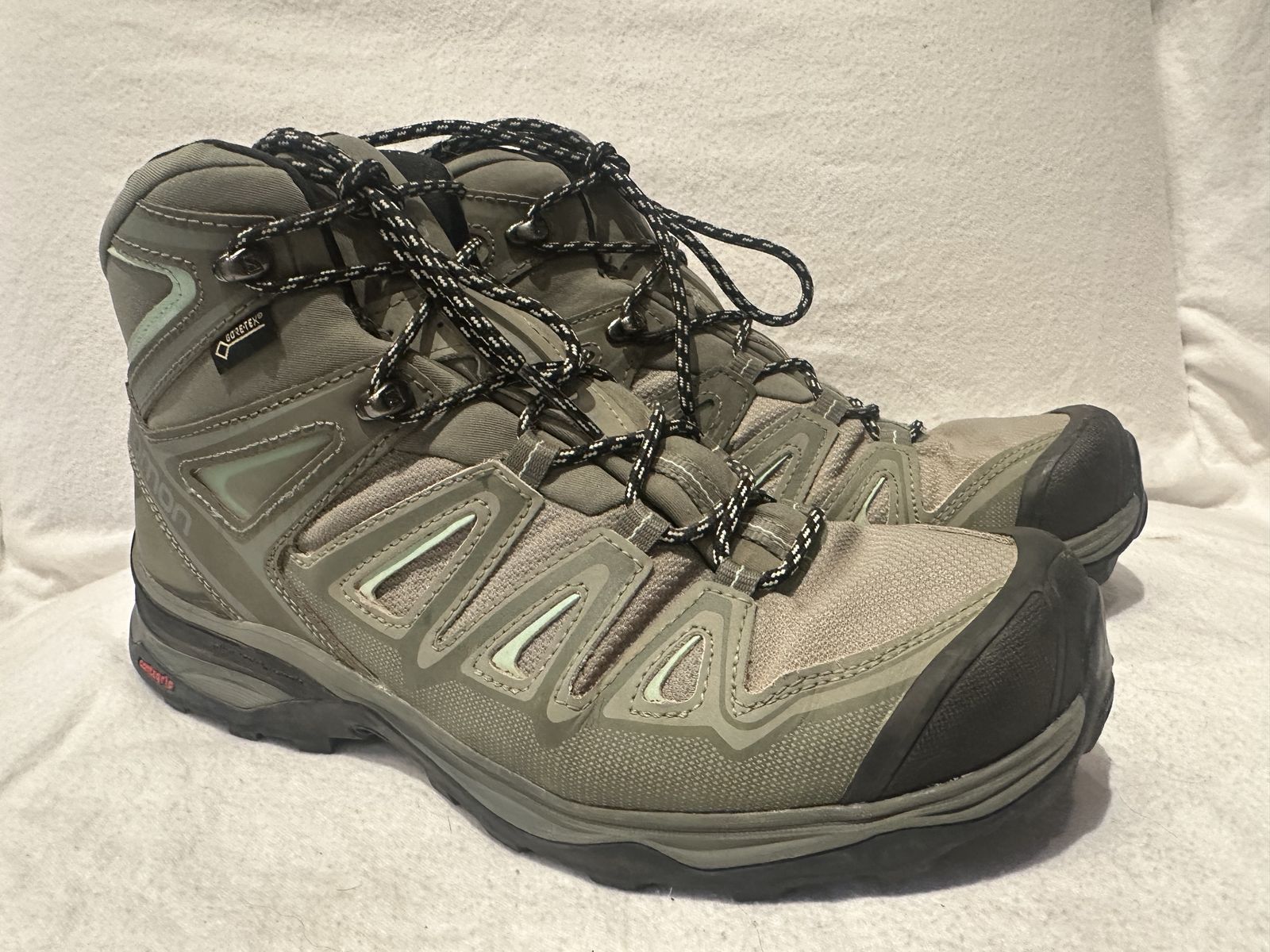 Salomon lists as a men’s size 10, but fits like a men’s size 9. These issues are sage green. X-Ultra Gore-Tex hiking boots in lightly used condition. See photos for details. I take cash or Venmo, but cash is preferred. Text is best. 801-201-4446. Check out my other ads for additional sizes and styles.
