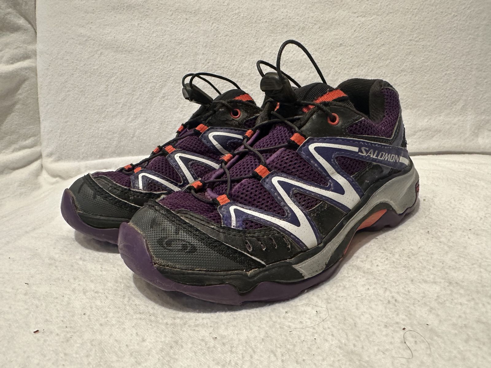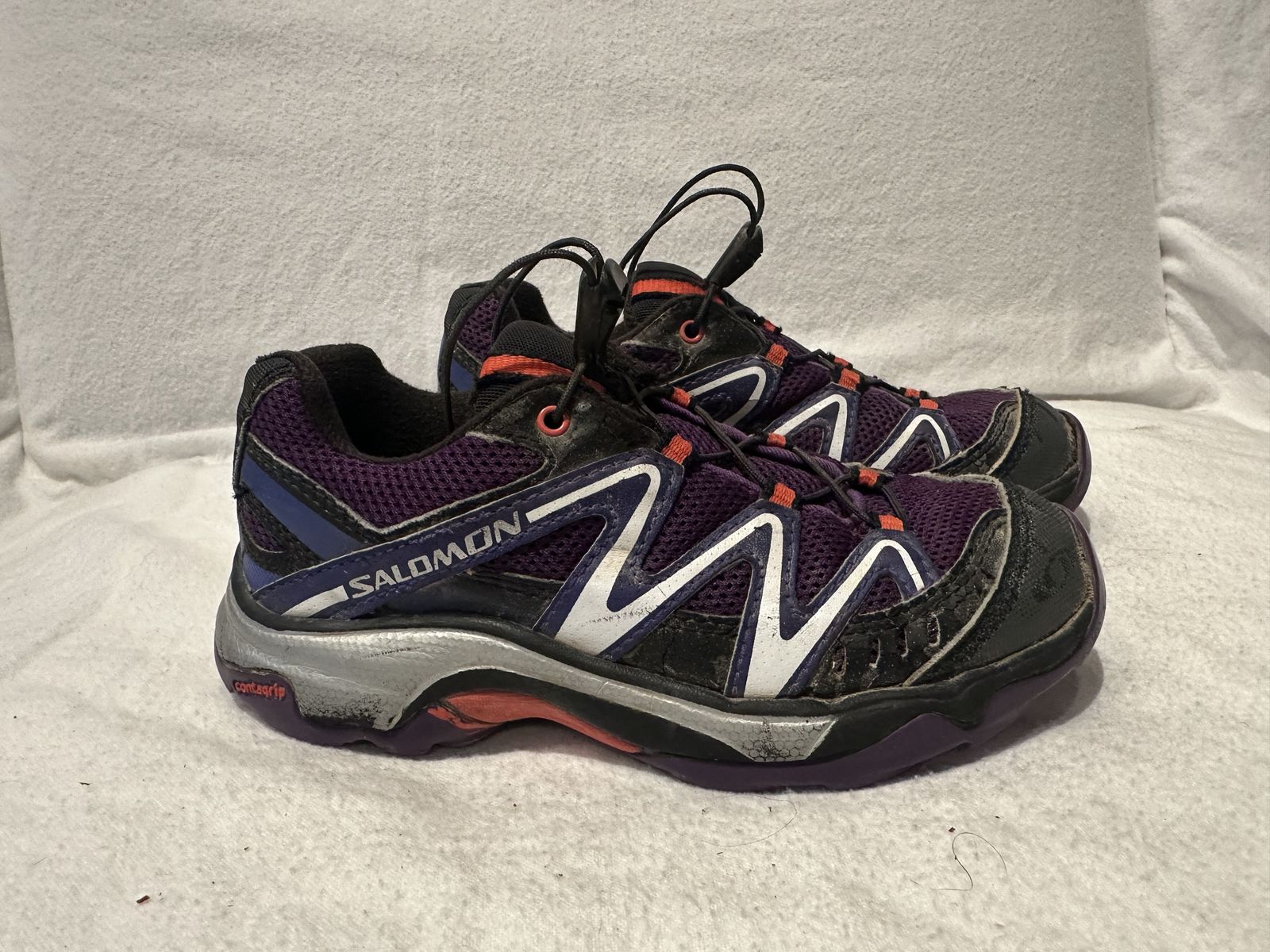 Salomon toddler size 12 purple mesh hiking shoes with corded laces. These are in good condition, see photos for details. I take cash or Venmo, but cash is preferred. Text is best. 801-201-4446. Check out my other ads for additional sizes and styles.