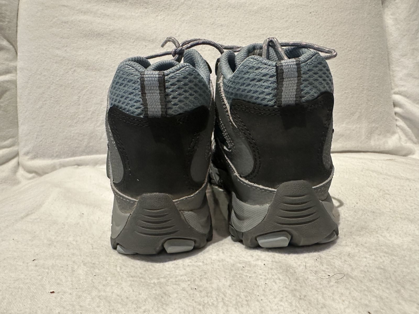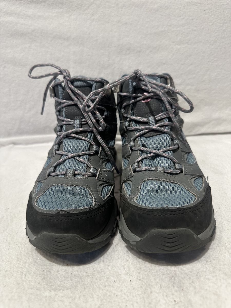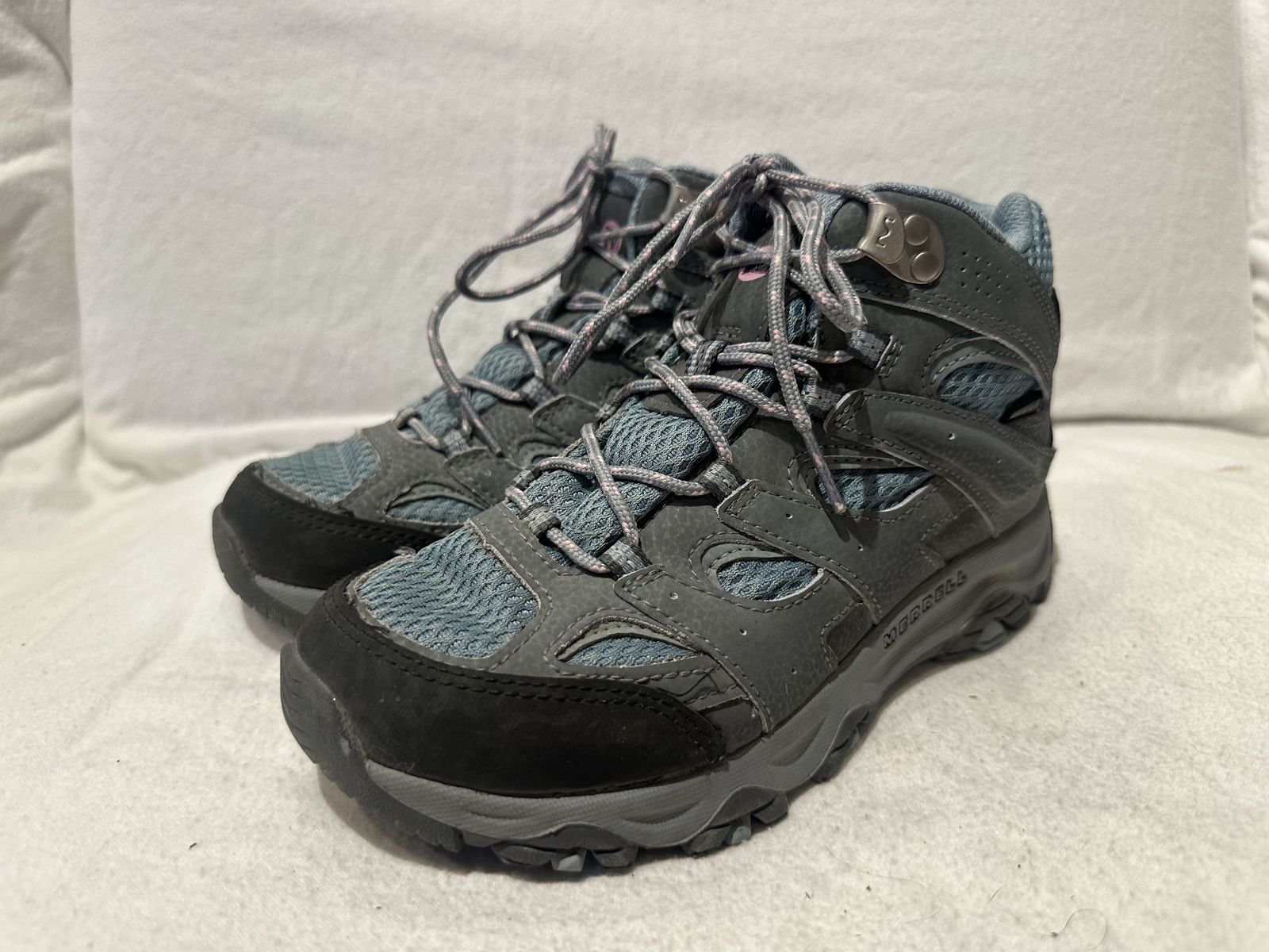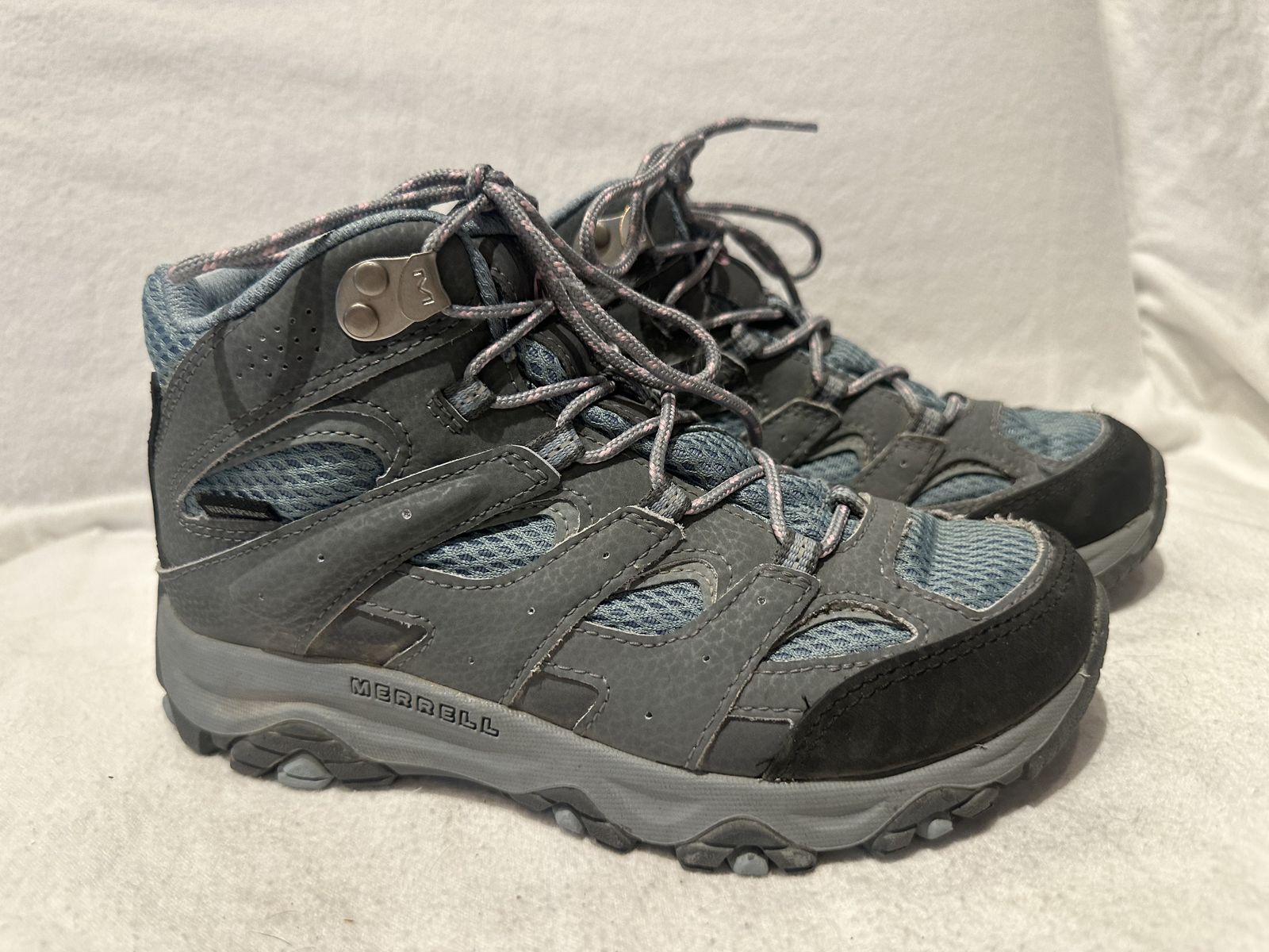 Merrell youth size 3.5 blue and gray with pink trim waterproof mid hiking boots. These are in excellent condition, see photos for details. I take cash or Venmo, but cash is preferred. Text is best. 801-201-4446. Check out my other ads for additional sizes and styles.