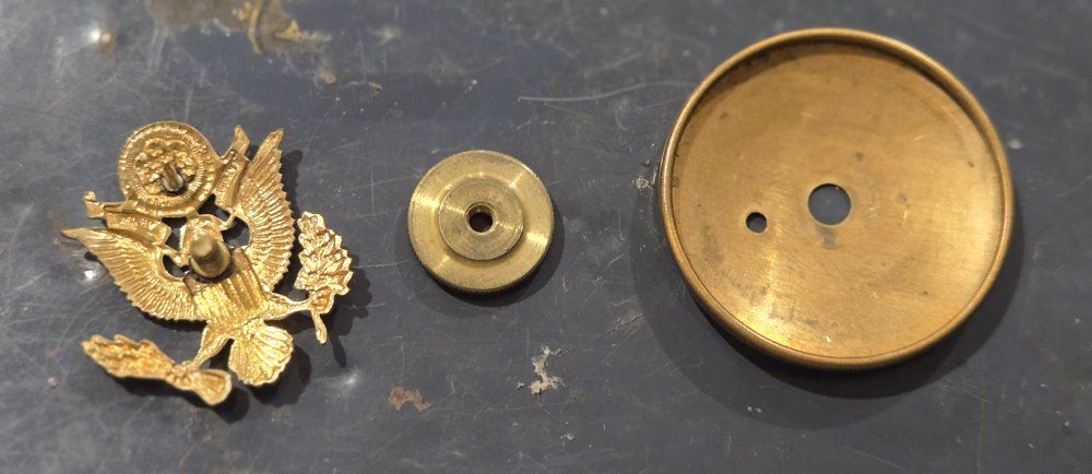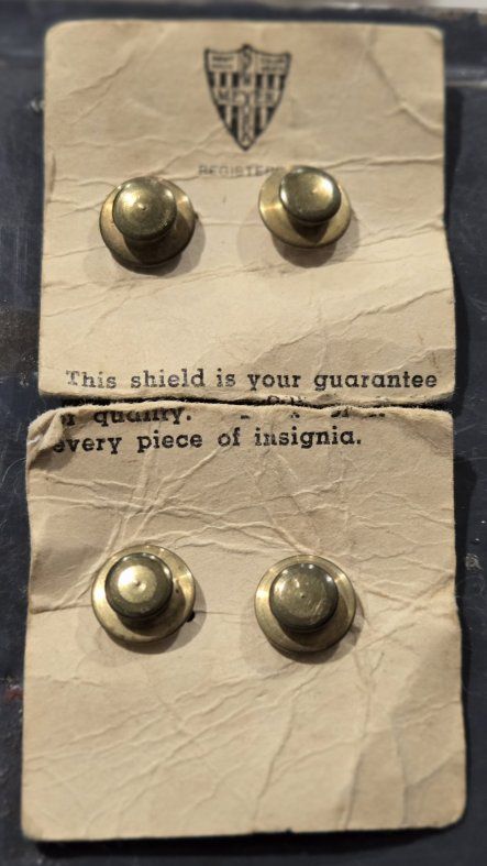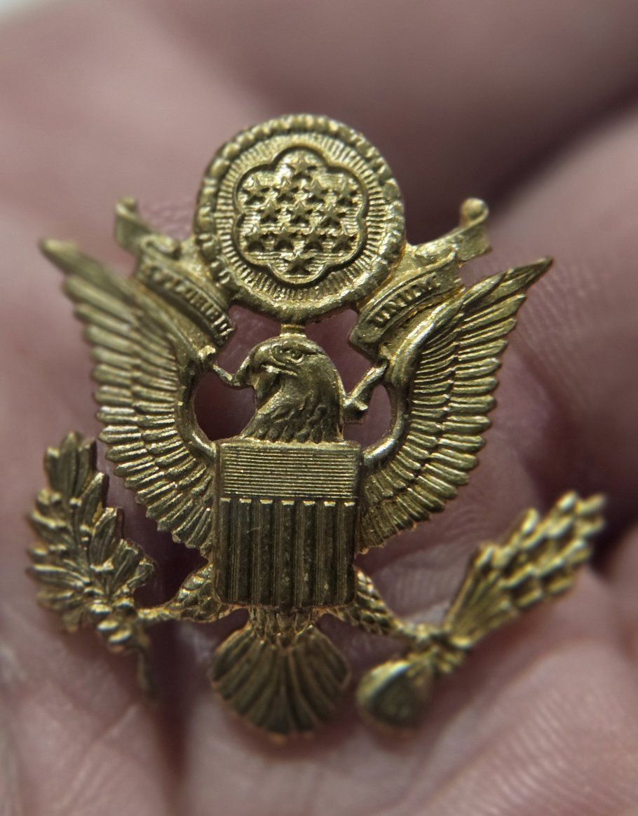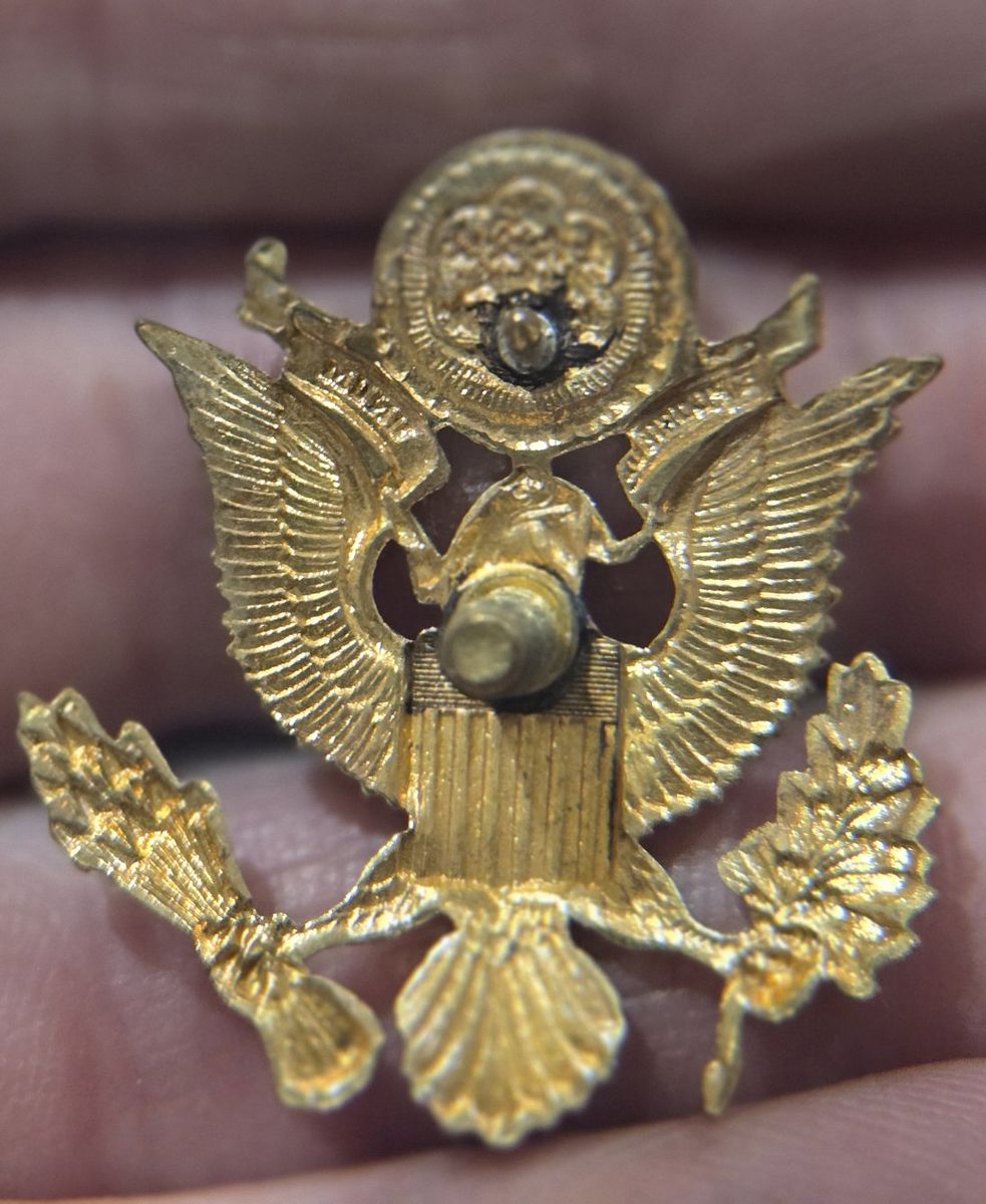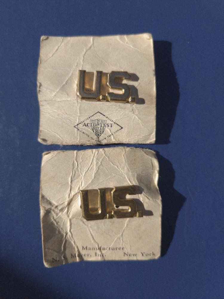 VenmoThis lot includes a variety of authentic vintage U.S. military insignia, mostly from the WWII period. Many pieces feature official maker marks and high-grade finishes. Highlights of the Collection: WWII Army Air Corps "Prop and Wings" Pin: Marked AMICO Sterling with a 1/20 10K gold filled finish. A beautiful example of pilot/aircrew cadet insignia. US Army Officer Cap Badge: Large gold-toned eagle emblem with a screw-back attachment, used on visor caps. N.S. Meyer "Acid Test" Pins: Multiple "U.S." lapel/collar pins marked by N.S. Meyer Inc. New York. The "Acid Test" mark indicates a high-quality gold-plating process designed to withstand corrosion. Rank Insignia: Includes gold-toned bars (Captain/Lieutenant) and smaller lapel pins. Condition: All items are in good vintage condition with a natural patina. See photos for specific maker marks and backings (screw-back and pin-back).