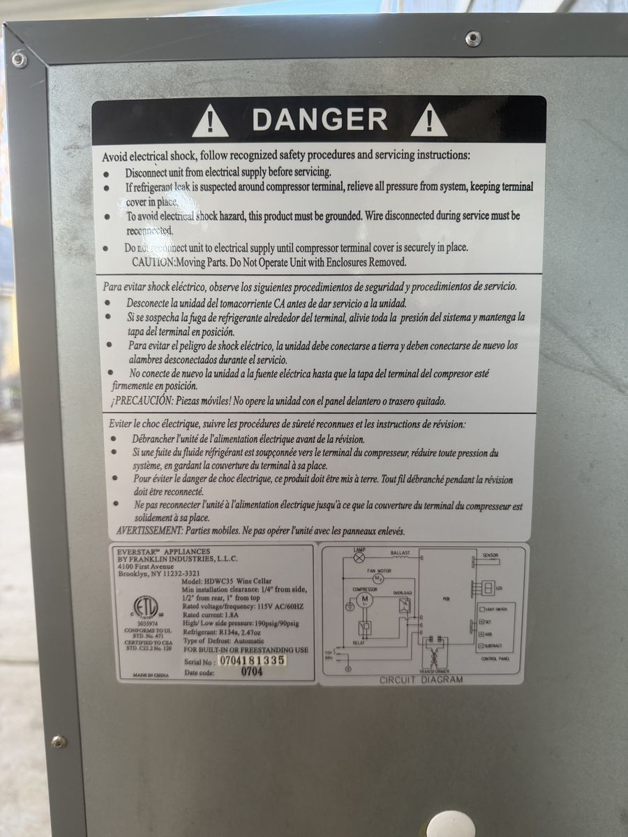 ApplePayReally good wine cooler with tons of life left in it. All functions work there is just very minor cosmetic ware, which are shown in photos. The wine cooler has a perfect working fridge that has working electronics to control the module. The cooler can light up to display bottles. Awesome little peice for your home or business. $250 obo