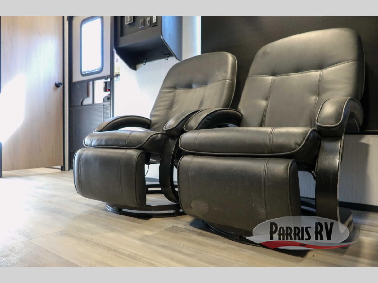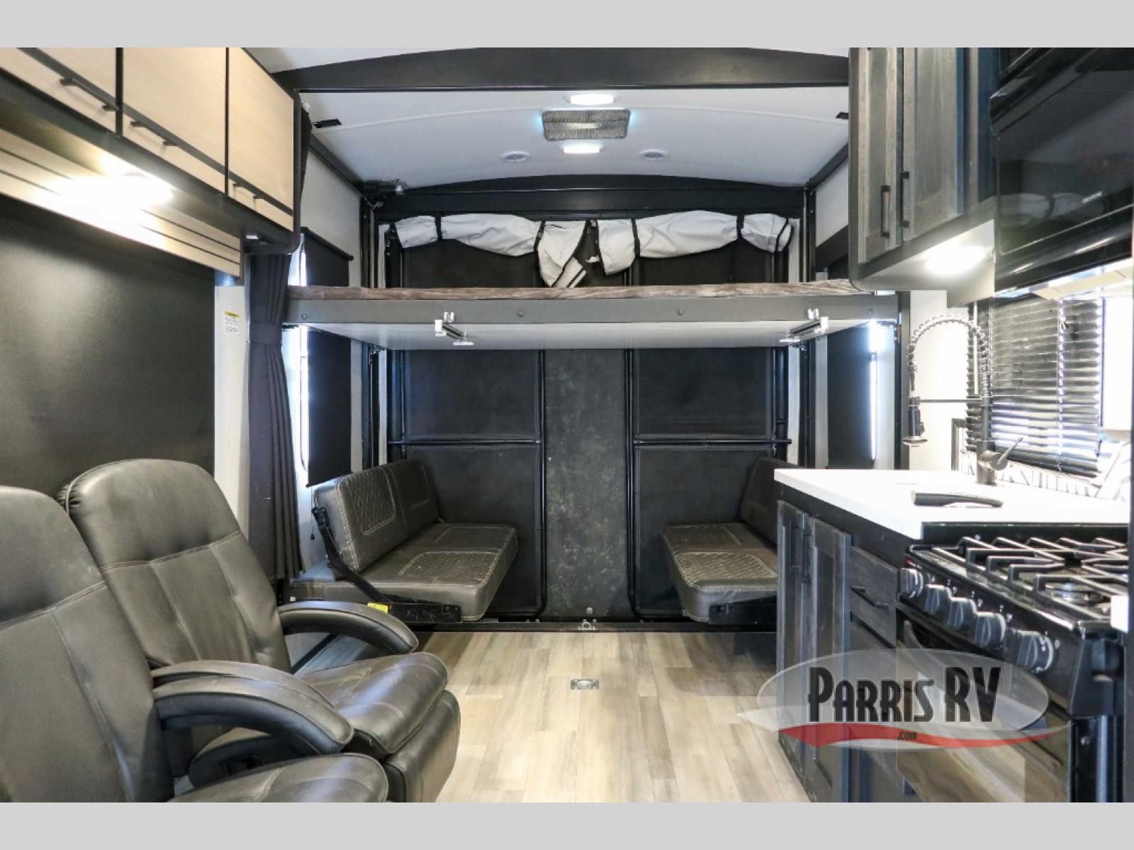 Each Stryker toy hauler travel trailer by Cruiser starts with a powder coated structural steel I-beam frame, Azdel composite laminated sidewalls, and a 102" wide body, perfect for your side-by-side, dirt bikes, or kayaks! The EZ flex rubberized suspension provides smooth towing on tougher roads, and the painted molded fiberglass front cap not only looks sleek, but provides better protection. Inside, you'll find barreled ceilings up to 98" in height, hardwood cabinet doors, solid surface kitchen cabinets, and numerous USB ports and 110V outlets. The removable carpet in the garage will create an open concept you are sure to love, and the industry-first pet palace under the bed will allow you to bring your loyal furry friends along. There's so much more to love about the Stryker toy haulers, like the premium sound system, the large windows, tons of storage space, and the list goes on!
