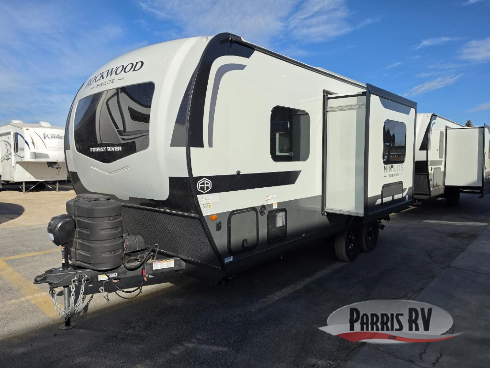 Each Rockwood Mini Lite travel trailer by Forest River is constructed with a fully laminated one-piece walkable roof, sleek frameless windows, and a six-sided full aluminum frame for strength and durability. The 12V thermostatically controlled heated tanks, plus radiant foil in the underbelly will allow you to camp well into the colder months, and the 200W roof solar panel will be perfect for a little off-gridding. Each model includes solid surface kitchen countertops, hidden hinge cabinet doors, roller shades, plus many more interior features. Having an AIR 360+ omnidirectional antenna with WiFi prep on board gives you the option to get some work done if it's needed, and the power tongue jack provides hassle-free set up, so you can enjoy more time relaxing!