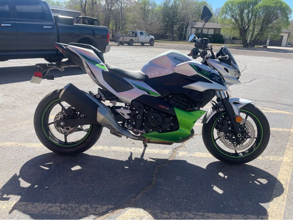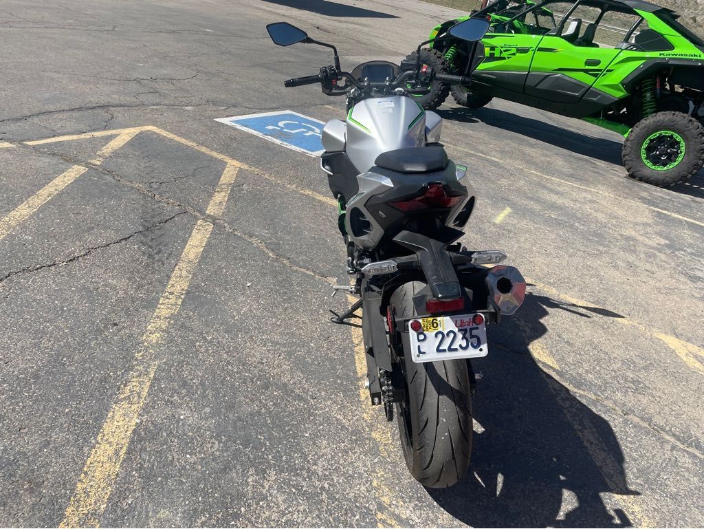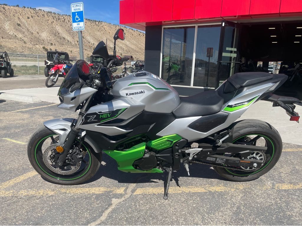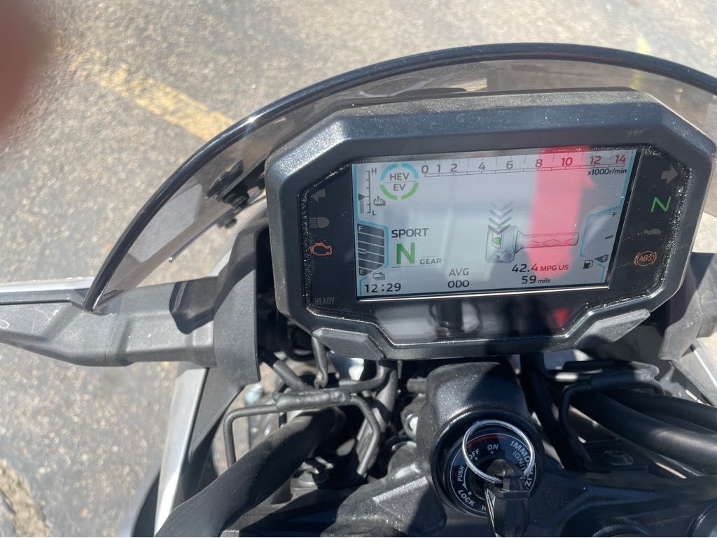 Engine Type: Parallel Twin Displacement: 27.5 cu. in. (451 cc) Bore and Stroke: Bore: 2.76 in. (70 mm); Stroke: 2.31 in. (58.6 mm) Cooling: Liquid Compression Ratio: 11.7:1 Fuel System: Gas / Electric Hybrid Transmission: Manual / Automatic Clutch Final Drive: 3.07 Front Suspension: Telescopic Fork Rear Suspension: Twin Sided Swing Arm Front Brakes: Hydraulic Disc Rear Brakes: Hydraulic Disc Front Tire: Dunlop® Sportmax Q5A: 120/70-17 (58W) Rear Tire: Dunlop® Sportmax Q5A: 160/60-17 (69W) Wheelbase: 60.4 in. (1535 mm) Seat Height: 31.3 in. (795 mm) Rake: 25 Trail: 4.1 in. (104 mm) Fuel Capacity: 3.7 gal. (14 L) Speedometer: Standard Tachometer: Standard Odometer: Standard