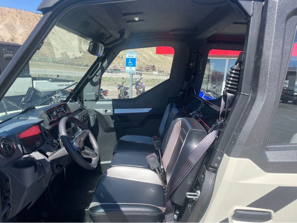 Engine Type: In-Line Displacement: 60.9 cu. in. (999 cc) Bore and Stroke: Bore: 2.89 in. (73.4 mm); Stroke: 2.32 in. (59 mm) Cooling: Liquid Compression Ratio: 10.6:1 Fuel System: Gas Front Suspension: Independent Double Wishbone Front Brakes: Dual Hydraulic Disc Front Tire: SUNF® 30 x 10-14 Rear Suspension: Independent Double Wishbone Rear Brakes: Dual Hydraulic Disc Rear Tire: SUNF® 30 x 10-14 Dry Weight: 2374.8 lb. (1077 kg.) Wheelbase: 122.2 in. (3104 mm) Front Travel: 12.7 in. (322.6 mm) Rear Travel: 12.7 in. (322.6 mm) Ground Clearance: 13.2 in. (335.3 mm) Fuel Capacity: 12.9 gal. (48.8 L) Box Capacity: 1000 lbs. (453.6 kg.) Towing Capacity: 2500 lb. (1134 kg.) Drive System: Continuously Variable (CVT) Speedometer: Standard Tachometer: Standard Odometer: Standard