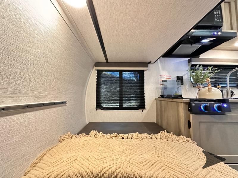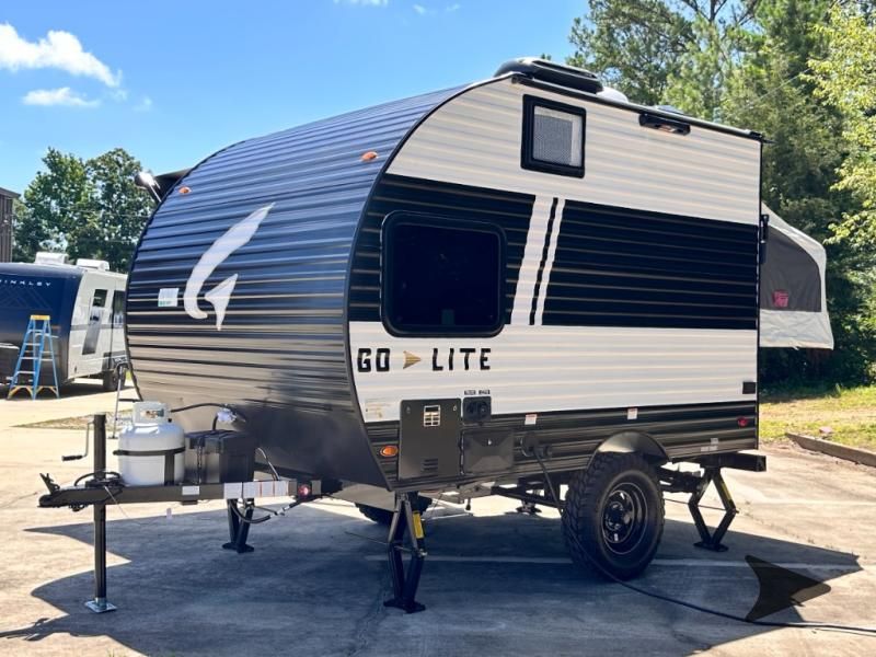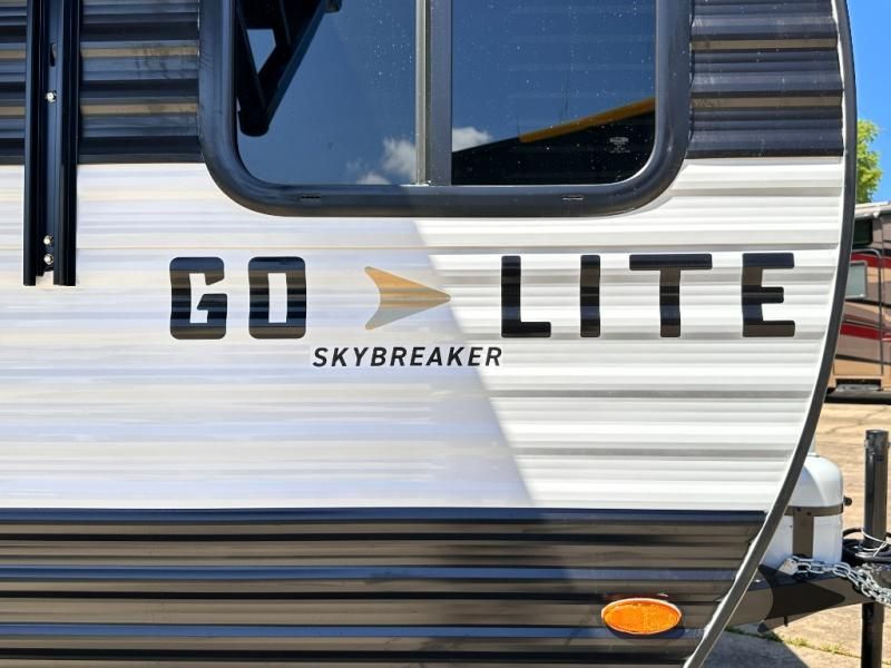 2025 Go Lite Skybreaker: Tiny Trailer, Huge Experience The Go Lite Skybreaker 12 travel trailer offers the functionality of a full-size RV in a lightweight, compact design that’s easy to tow with an SUV. It’s an excellent choice for adventurers who want to explore the great outdoors without upgrading their vehicle or dealing with the challenges of towing a large camper. Key Features of the Go Lite Skybreaker 12 Spacious Interior: The Go Lite Skybreaker 12 may be compact, but it’s loaded with features you'd expect in a much larger trailer. It comes equipped with a full kitchen, a dinette, a dry bath, a bunk bed, and a tent bed—providing three separate sleeping areas. You'll also enjoy tons of storage and panoramic windows that keep you connected to the great outdoors. It’s an awesome little model built for big adventures. Lightweight and Easy to Tow: With aUVW of just 2,300 pounds, the Go Lite is exceptionally lightweight, making it towable by smaller vehicles like SUVs, compact trucks, and some capable minivans. With anexterior length of only 13'10", its compact design allows you to access tight camping spots that larger RVs simply can’t reach. Full Kitchen: The Go Lite’s kitchen is thoughtfully designed to bring the comforts of home on the road. It features an4.4-cubic-foot refrigerator and freezer, a full-sizedresidential farmhouse sink, a microwave, and a 2-burner stove, making cooking easy and enjoyable. Adventure-Ready Design: Built on acustom chassistailored to its floorplan, the Go Lite Skybreaker 12 offers extra support where it’s needed most. With anadjustable axle and heavy-duty off-road tires, this trailer is ready to take on rugged terrain and go wherever your adventures lead. Why Choose Go Lite? Go Lite redefines lightweight travel trailers, making adventure accessible to everyone. Weighing as little as 2,000 pounds, Go Lite trailerscan be towed by most SUVs, V6 vehicles, and even minivans. Unlike other compact RVs, Go Lite combines affordability and functionality with essential features like a full kitchen, bathroom, and smart storage solutions. With Go Lite, you can embark on every adventure without compromise.