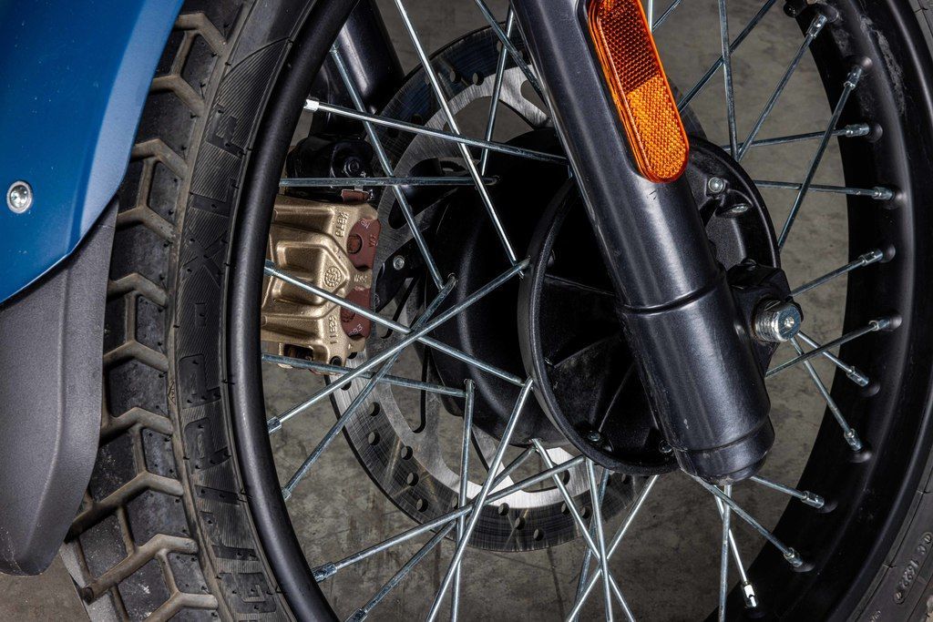 Modern life demands a constant switching between modes. Wire spoked wheels and dual purpose tires ensure a sure footed grip and effortless agility across tarmac, rough roads and dirt tracks. Long travel suspension and high ground clearance ensure an easy ride over tricky terrain because the Scram 411 is built to handle whatever life throws at you.