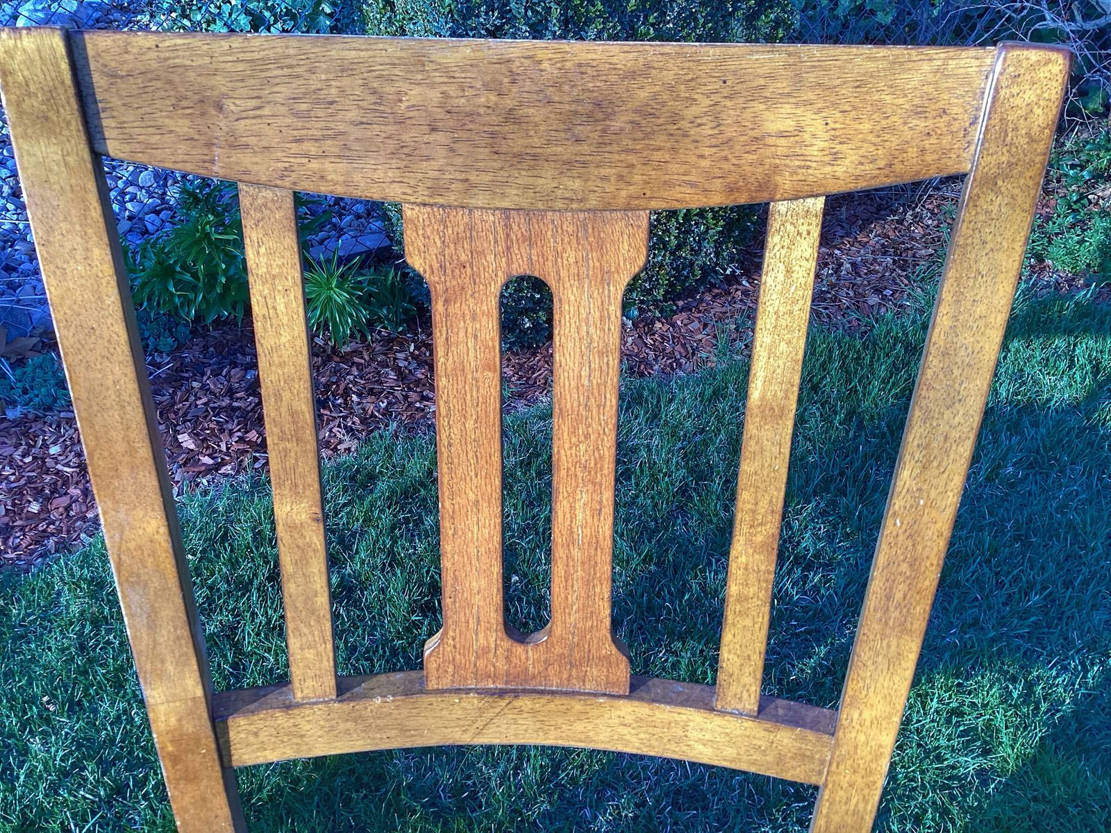 Wood chairs, fabric seat, 22" seat height and 41" overall. Sold as a pair for $10.