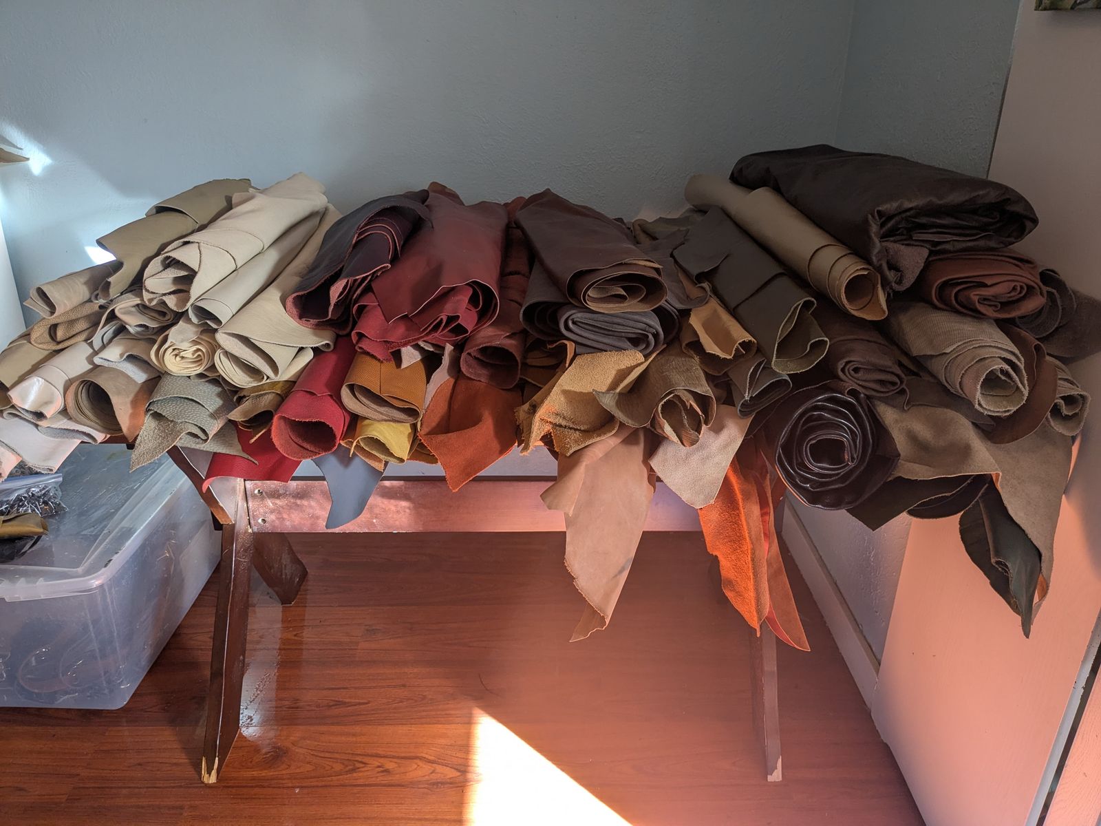 This inventory would also be a goldmine for anyone working in leather apparel, costume, craft, mixed-media art, leather book binding.