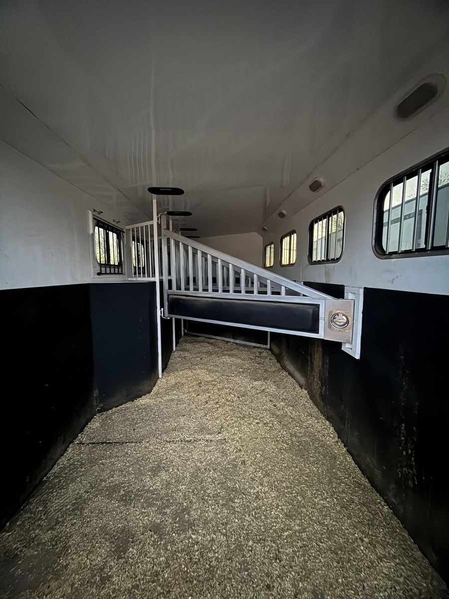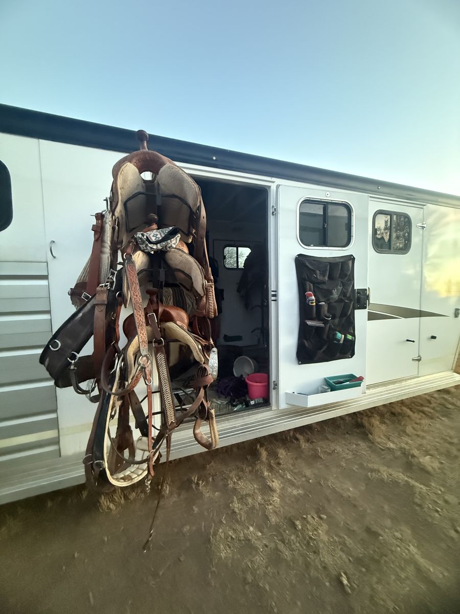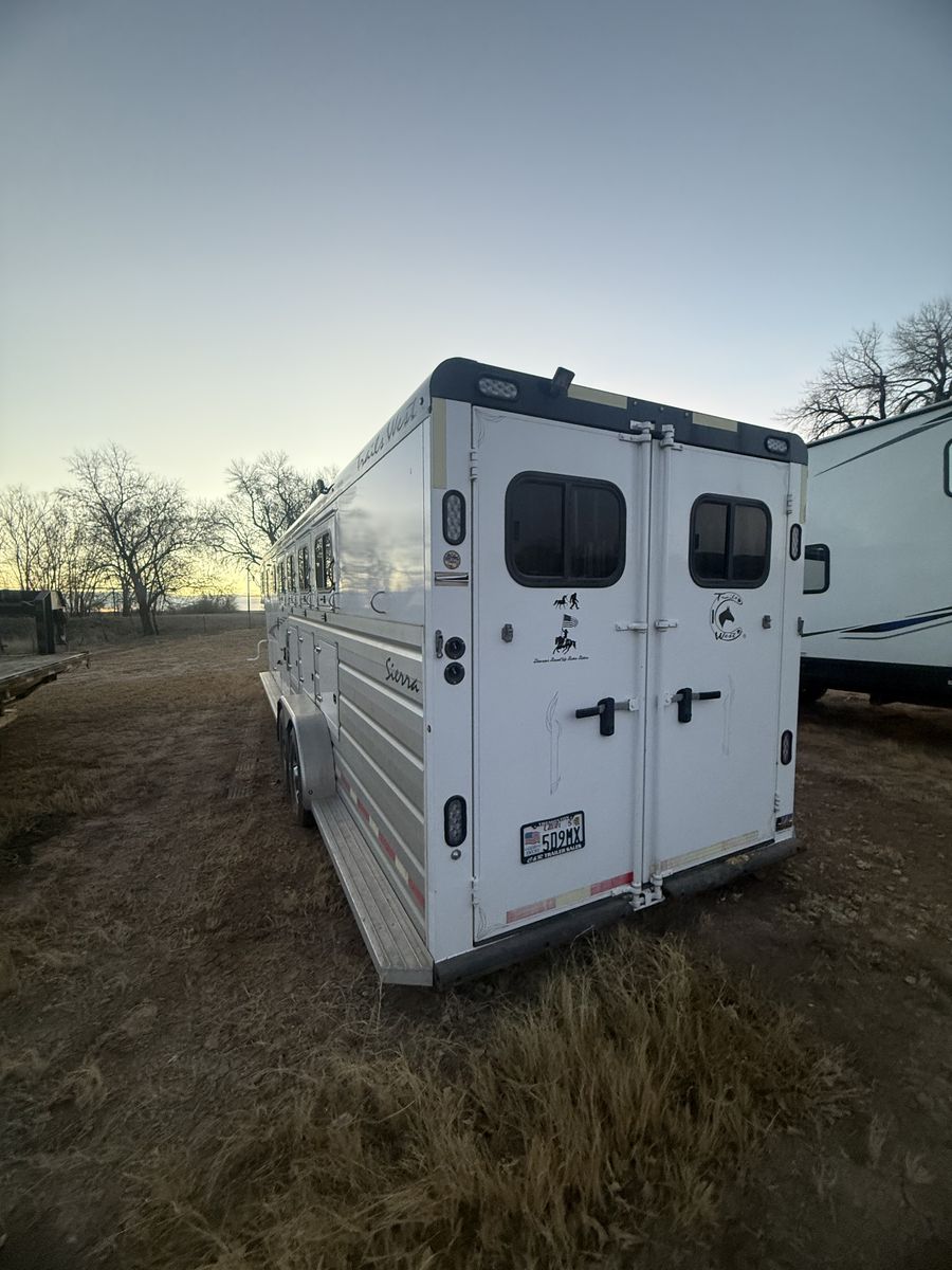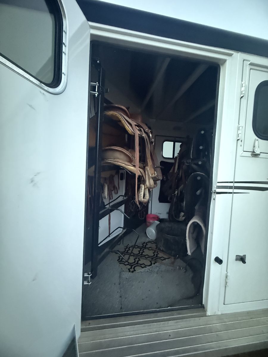 ZelleThis has been an amazing trailer. Just time to downsize. Dressing room with mattress above the gooseneck. Has a walk-through door from dressing room to tack room. The tack room is my favorite part about this trailer. It is a walk-through tack room so it opens up from both sides of the trailer. Holds eight saddles. It is a Sierra two so it has the better walls where the horses go. It is seven wide by seven tall. Four horse slant load with stud wall in the front. It has always been taken care of and maintained. Literally only gets used a half a dozen times a year. New tires put on it last year. Also has extra storage along the side with feed mangers inside.