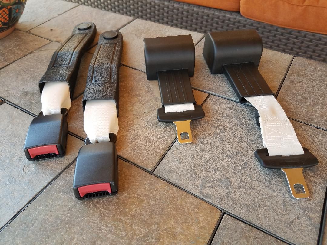 (2) sets of retractable seat belts. Has white webbing. Lap belt only, not over the shoulder. These are new unused. Only need to purchase the mounting hardware here: https://www.seatbeltplanet.com/i-30498159-hardware-kit-1.html?q=