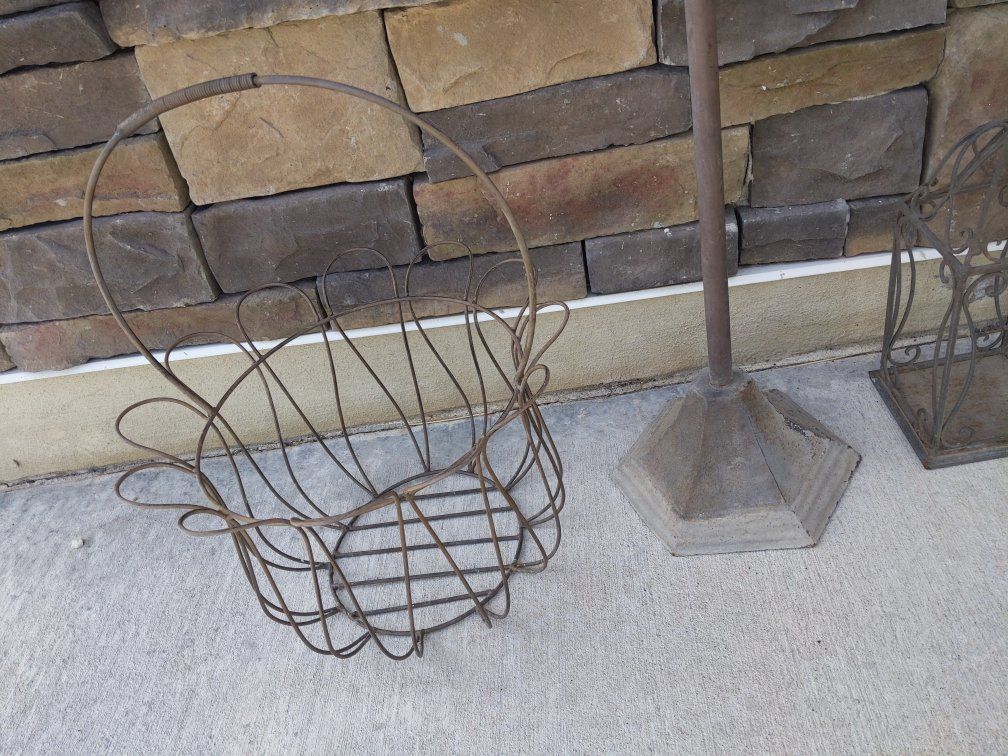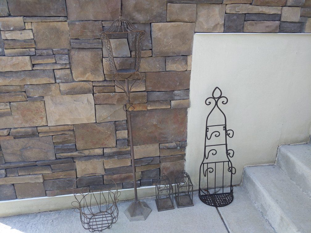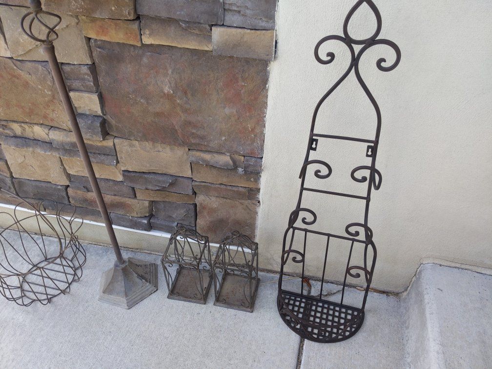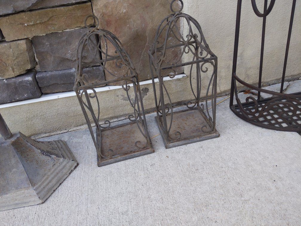 VenmoThese are all metal and most have lived outside. The basket $5 lanterns $5 for the pair Tall candle lantern $8 Towel rack is $8 (indoors) All for $20