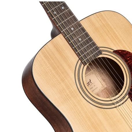 The Cort Earth Pack delivers a bold playing experience for any aspiring players seeking quality built instrument in a complete starter package. The Earth Pack includes Earth 60 with features that are hard to find in its price range. Earth 60 features a full-sized dreadnought body with solid spruce top and mahogany back and sides for great top end tone and warm, balanced sounds, and is built by the same builders that make Corts higher tier models. Also included in the Earth Pack are a spare pack of strings, picks, a gig bag and an electronic guitar tuner to get you playing instantly.