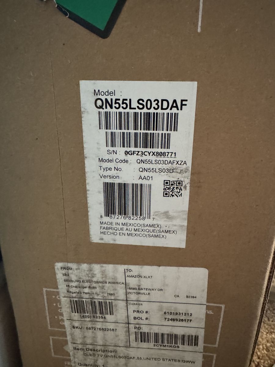 New in box. Samsung QN55LS03DA 55 inch The Frame QLED 4K Smart TV. 11924670 Please see pictures for additional information.