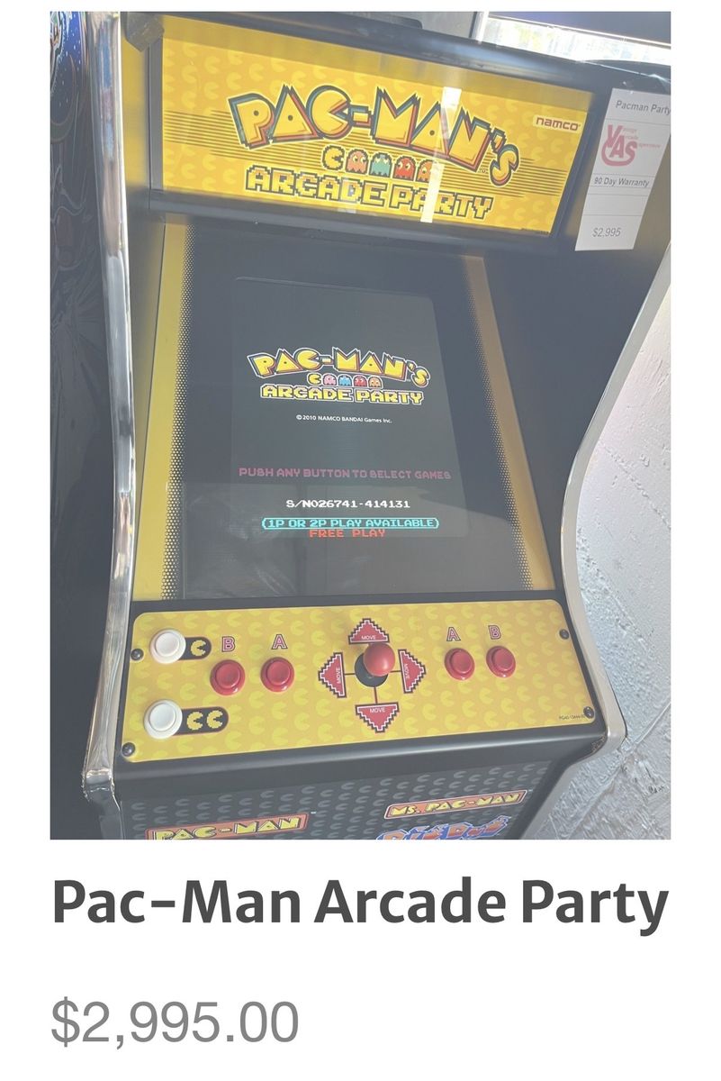 Pac-Man Party Arcade Game Dimensions: H: 68, W: 24, L: 33, Wt: 210 Lbs
