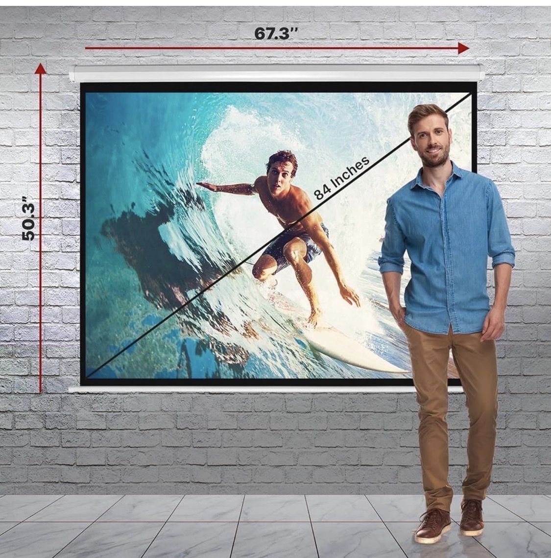 ApplePayPyleHome PRJSM9406 84" Manual Projection Screen - Front Projection - Matte White - 50.3" Height x 67.3" Width - Ceiling Mount, Wall Mount new in box