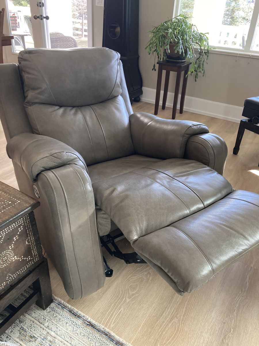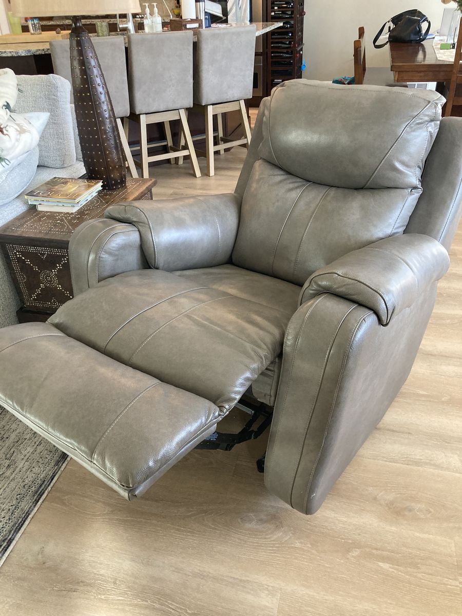 ZelleWe are selling a beautiful LEATHER SIERRA POWER ROCKER RECLINER that is in excellent condition. It has very little wear and looks like new. The color is Taupe and the leather is very soft and comfortable. When we purchased the chair we also bought the leather cleaning and conditioning kit, which has not needed to be used and will be included with the sale. The measurements of the chair are 38"Hx27"Wx27"D. This is an electric recliner only - not a lift recliner. It has a USB port for easy charging of your phone and other devices.