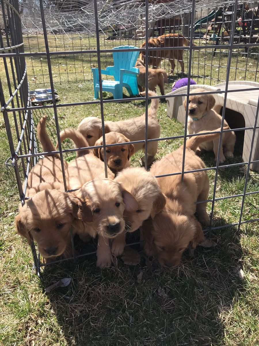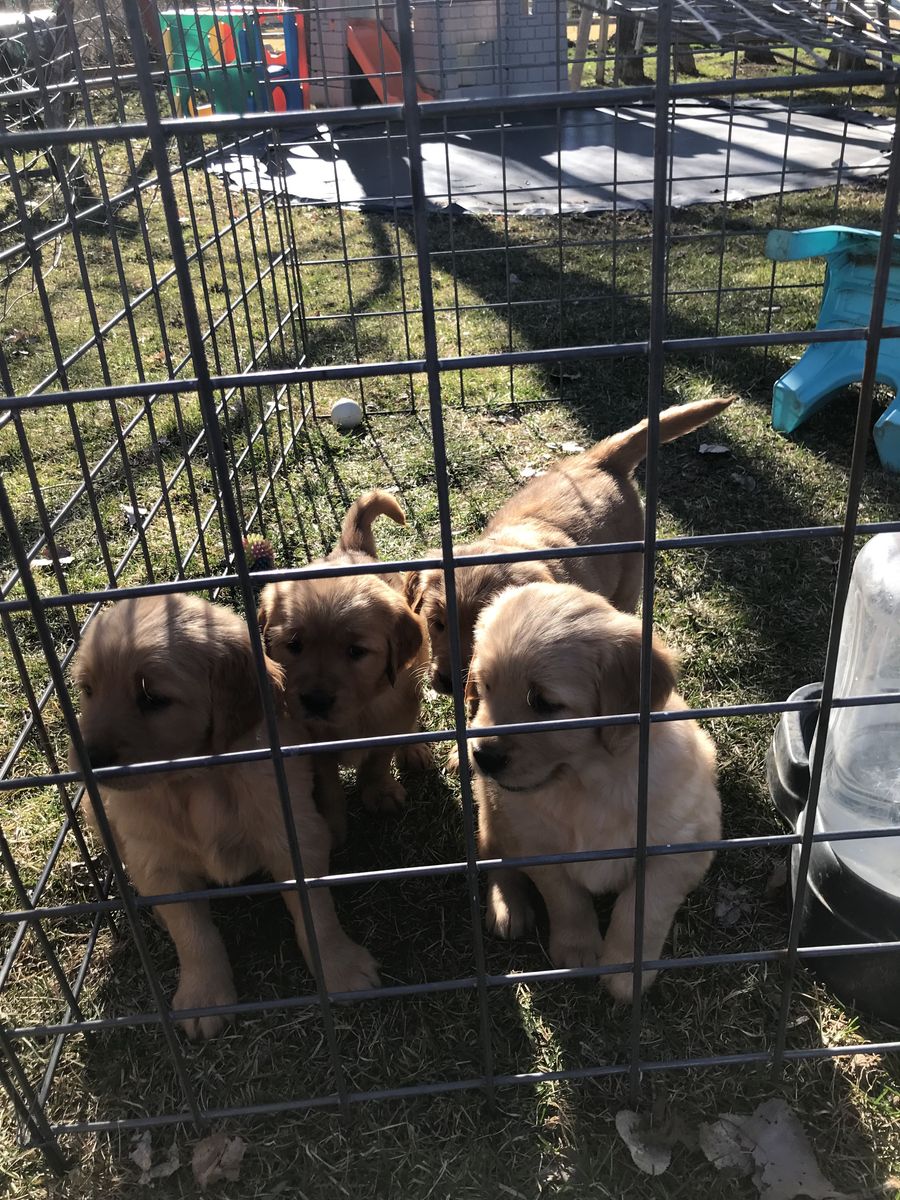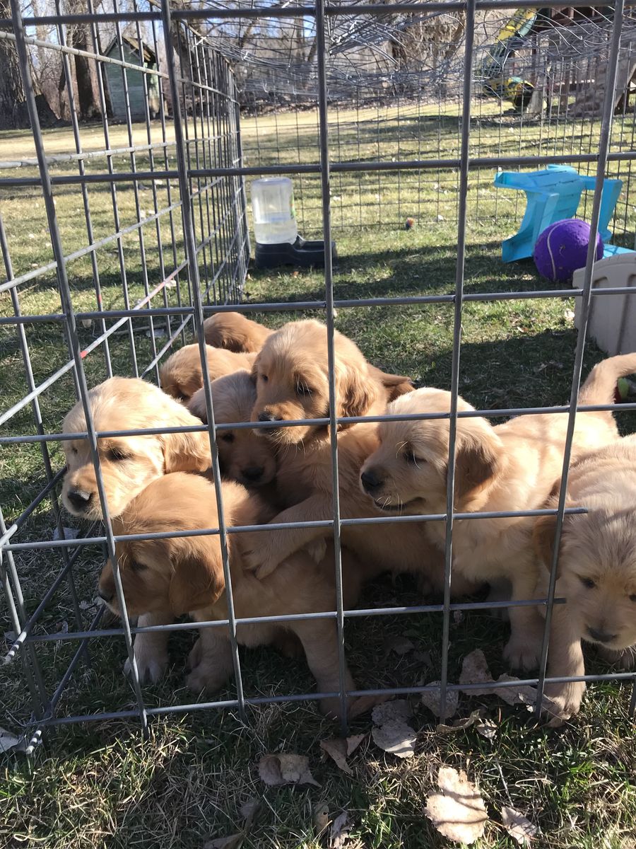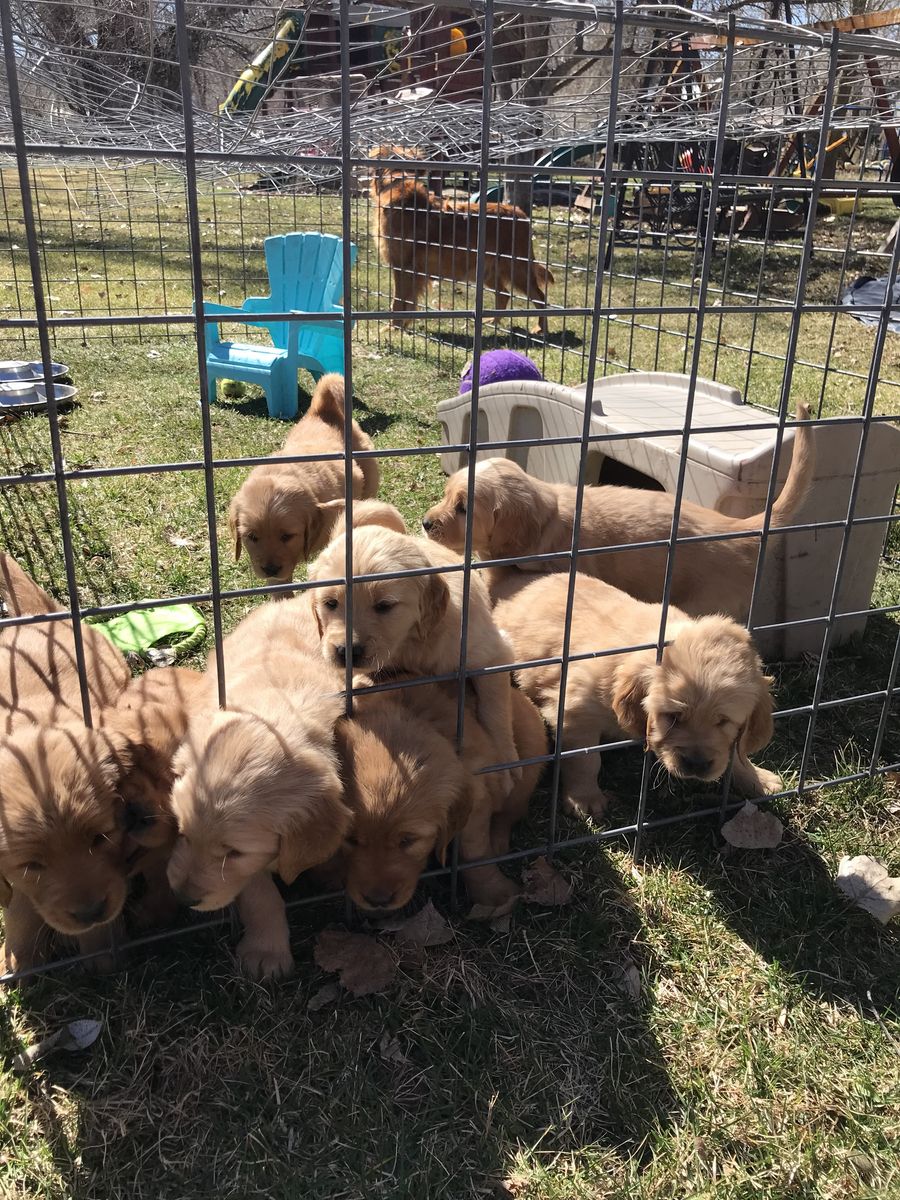 VenmoMeet Paisley and Dukes litter of puppies! They welcomed 4 girls and 4 boys. They are beautiful puppies. They are six weeks old now and will be 8 weeks old the first week of April. They will be ready for their new homes just in time for Easter and Spring/Summer fun. Momma Paisley is heath tested and genetically clear through breeding. She is a beautiful dark red golden. She lives here on a farm in the mountains of Utah. She has great drive and is a perfect Field bred Golden Retriever. She loves hunting and being in the mountains. The dad Duke belongs to a different program but is heath tested and clear. He is a more traditional golden color, very friendly and playful. Both parents are a little on the smaller side for goldens. Paisley is about 65 lbs, and Duke is about 70 lbs. The perfect size for hunting. The puppies are a good variety of color and will be a rich golden to dark golden color. The puppies will have their retriever training and crate training started. They will come home dewormed at 2,4,6,8 weeks of age, health/vet check, AKC papers, UTD vaccinations, puppy package, and loved! A $200 deposit will hold your spot in the picking order. Picks start at 6 weeks. Breeding rights are an additional $100. Message or text with any questions. Thanks for looking. Most of the pictures are of the puppies and Paisley. One is of Duke the father. Puppy pictures will be updated weekly.