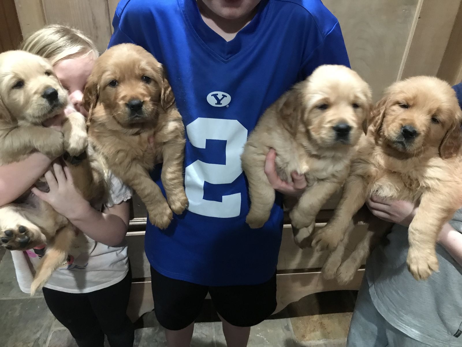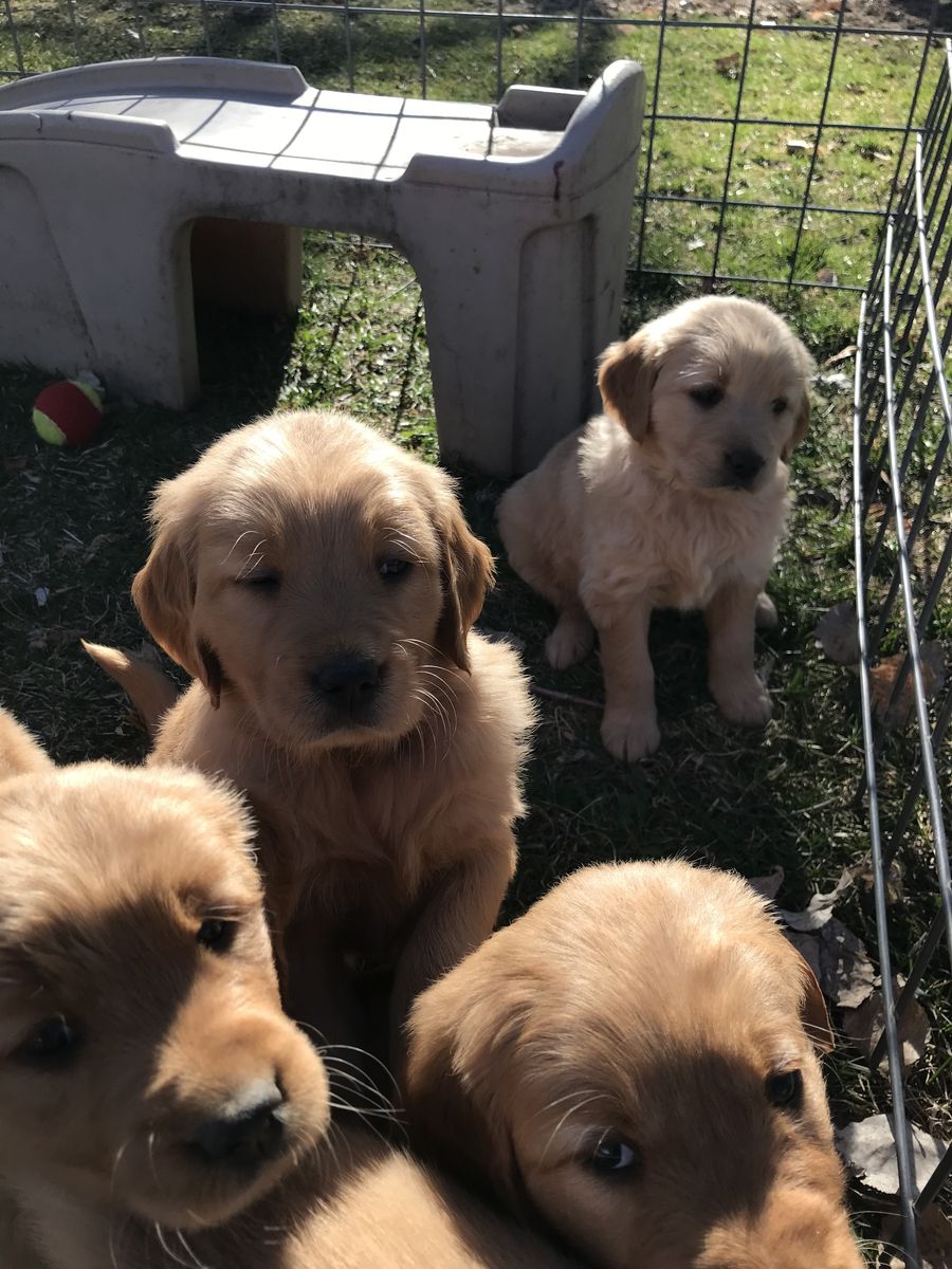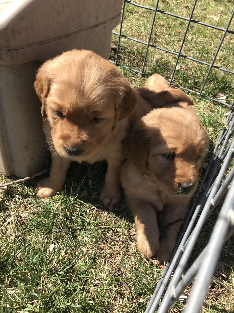 VenmoMeet Paisley and Dukes litter of puppies! They welcomed 4 girls and 4 boys. They are beautiful puppies. They are six weeks old now and will be 8 weeks old the first week of April. They will be ready for their new homes just in time for Easter and Spring/Summer fun. Momma Paisley is heath tested and genetically clear through breeding. She is a beautiful dark red golden. She lives here on a farm in the mountains of Utah. She has great drive and is a perfect Field bred Golden Retriever. She loves hunting and being in the mountains. The dad Duke belongs to a different program but is heath tested and clear. He is a more traditional golden color, very friendly and playful. Both parents are a little on the smaller side for goldens. Paisley is about 65 lbs, and Duke is about 70 lbs. The perfect size for hunting. The puppies are a good variety of color and will be a rich golden to dark golden color. The puppies will have their retriever training and crate training started. They will come home dewormed at 2,4,6,8 weeks of age, health/vet check, AKC papers, UTD vaccinations, puppy package, and loved! A $200 deposit will hold your spot in the picking order. Picks start at 6 weeks. Breeding rights are an additional $100. Message or text with any questions. Thanks for looking. Most of the pictures are of the puppies and Paisley. One is of Duke the father. Puppy pictures will be updated weekly.
