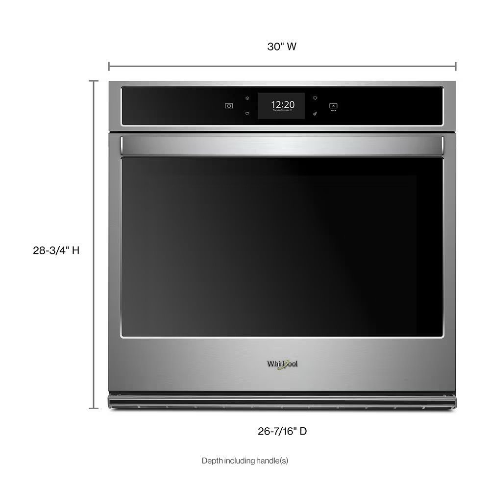 Whirlpool 30 Inch Smart Single Wall Oven with True Convection Cooking, Touchscreen, Frozen Bake™ Technology, Convection Conversion, Temperature Sensor, Multi-Step Cooking, Rapid Preheat, Keep Warm Setting, FIT System, Control Lock Mode, Self-Close Door, Star K Compliant Sabbath Mode and 5.0 cu. ft. Total Capacity: Fingerprint Resistant Black Stainless Steel