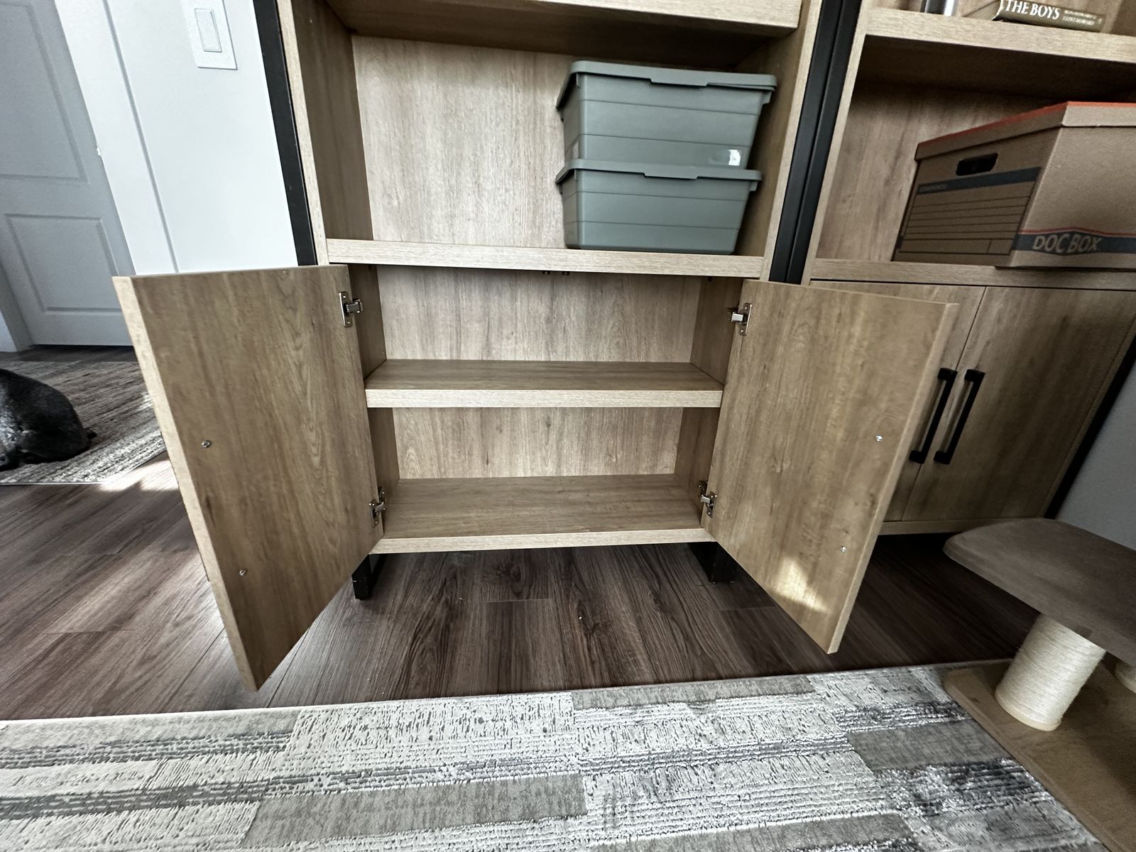 More info here: https://www.rcwilley.com/Furniture/Bookcases/120013631/Mason-Natural-and-Black-Bookcase-with-Cabinet-View