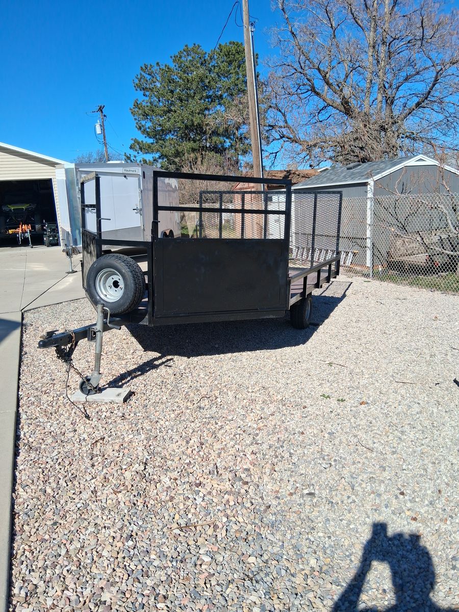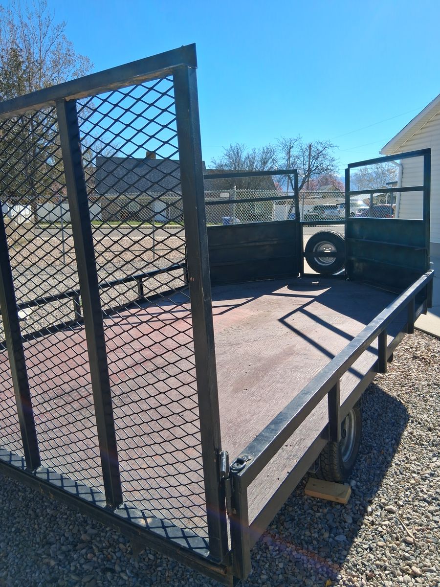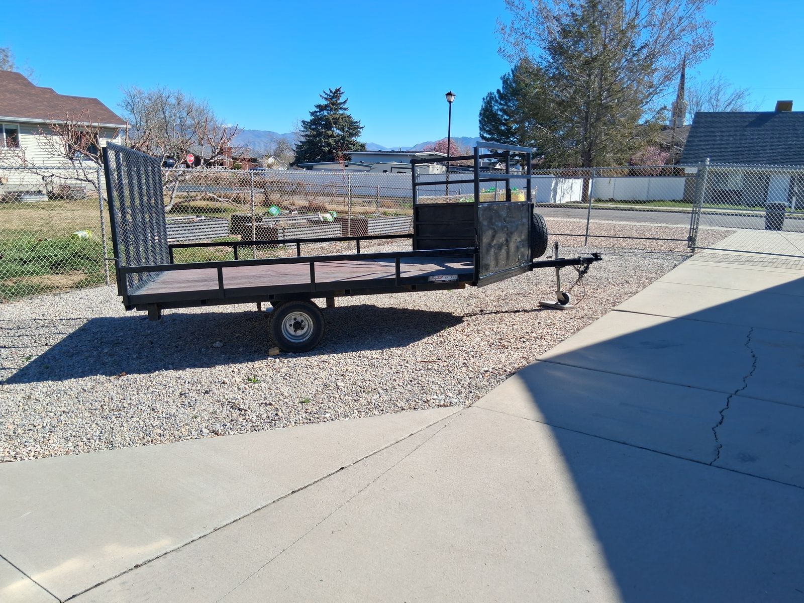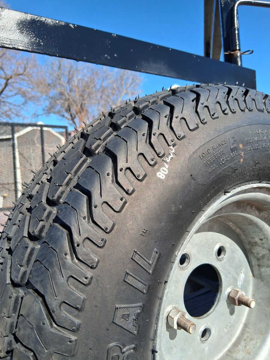 PayPal2 or 3 place drive on/off atv or snowmobile trailer. Has worked great for me but not long enough for the side by side. All 3 tires new sepr 2024..load range E tires. Box is 8x10..V in the front is 3 ft, tongue is just over 3 ft, so total dimensions are 8 ft wide and just over 16 ft long. Both ramps on front and also the rear come down. Fits standard 2 inch ball.