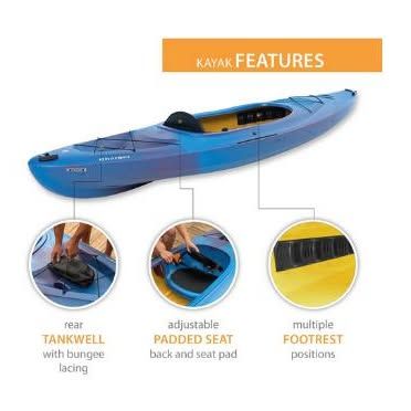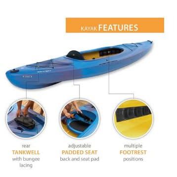 Enhanced Stability: Built-in foam block for additional flotation and stability on the water. Ample Storage: Rear tankwell with bungee lacing and six-point bungee system for secure storage. Durable Construction: Made from high-density polyethylene (HDPE) for impact resistance and weather resistance. Easy Transport: Front and rear T-handles for convenient transport to and from the water. Versatile Footrests: Multiple footrest positions to accommodate paddlers of different sizes. Onboard Convenience: Onboard phone dock for hands-free device use while kayaking. Included Paddle: Comes with a paddle keeper to secure your paddle and a paddle included for immediate use.