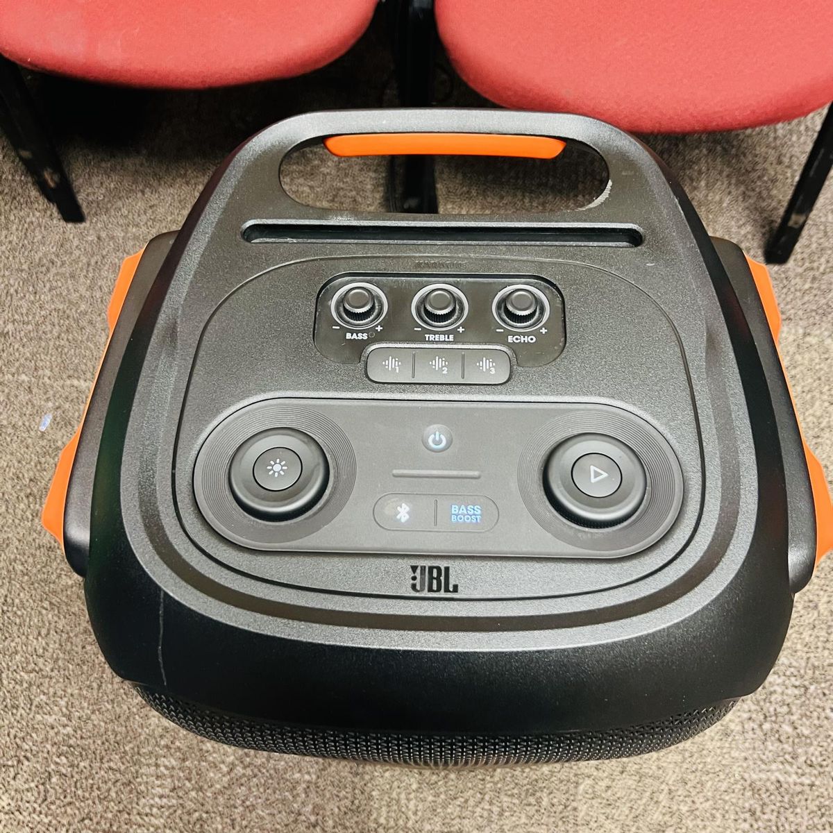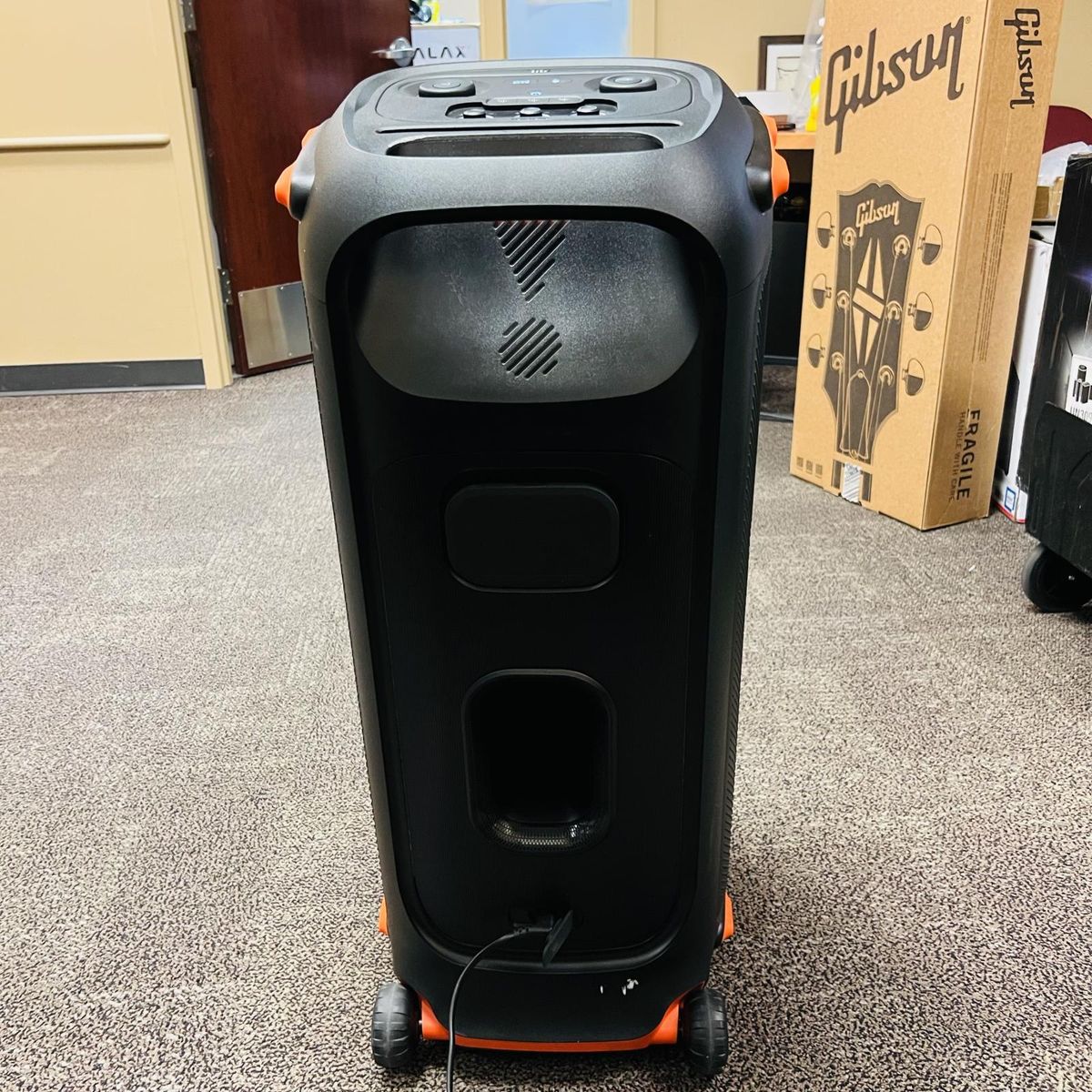 Elevate your parties with the JBL PartyBox 710 Portable Party Speaker. Designed for music lovers and entertainers, this premium speaker delivers a powerful 800W of JBL Pro Sound, ensuring deep bass and crystal-clear highs. Seamlessly connect your devices via Bluetooth, USB, or AUX inputs to play your favorite playlists. The signature dynamic RGB lightshow syncs to your music, creating a vibrant atmosphere and transforming any gathering into a full-blown party. Built-in wheels and a sturdy handle make it easy to transport, whether you’re hosting indoors or taking the celebration outside. The splashproof IPX4 design ensures the PartyBox 710 can withstand accidental spills and weather, so you never have to stop the fun. Plug in a mic or guitar for interactive performances – perfect for karaoke nights. Combine two PartyBox 710 speakers wirelessly for an even more immersive stereo experience. Don’t miss out – bring home the JBL PartyBox 710 and turn every moment into a memorable event!