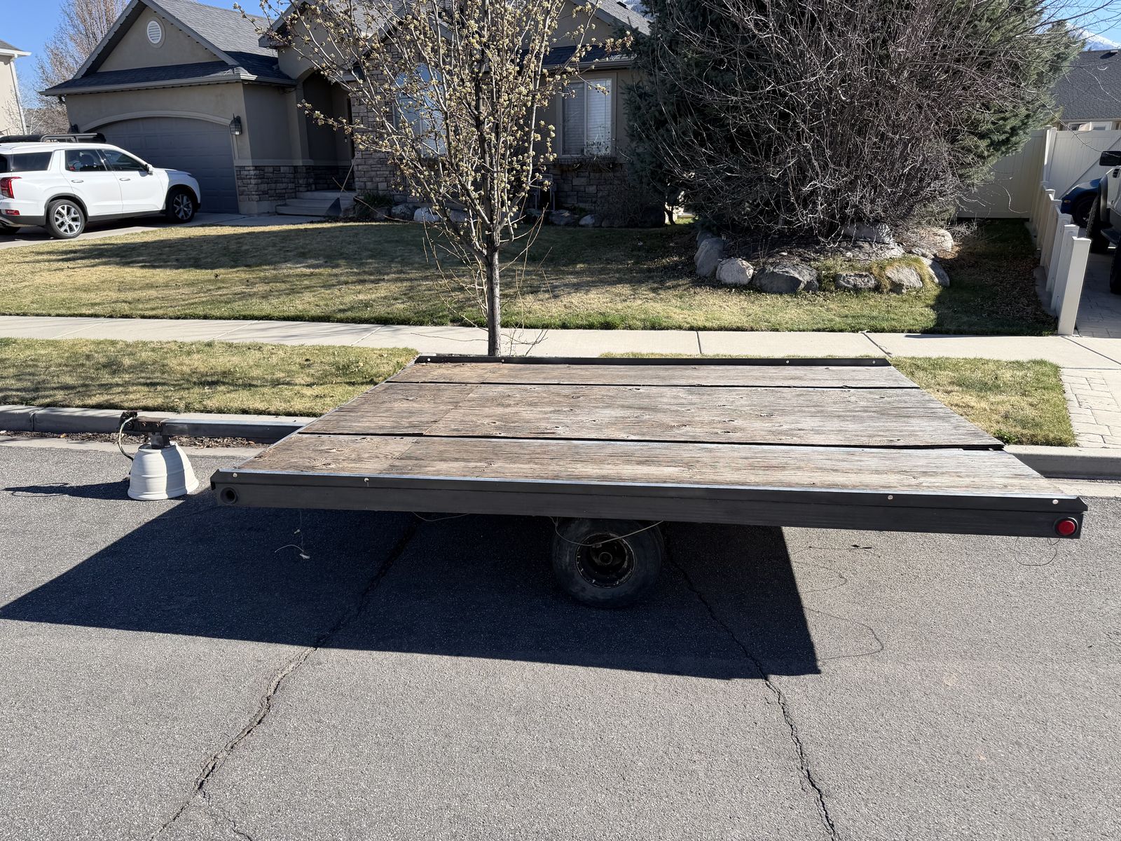 VenmoThis is good, solid trailer. The deck is in good condition, and tilt works great. The lights work, but the wiring needs to be secured. Has a 2" hitch and safety chains. Tires are in decent condition. Price is negotiable. Text with questions.