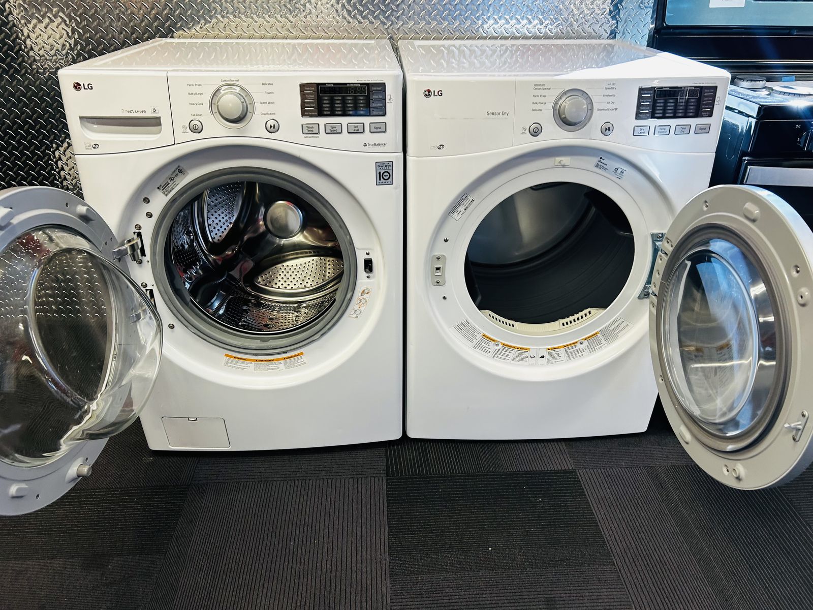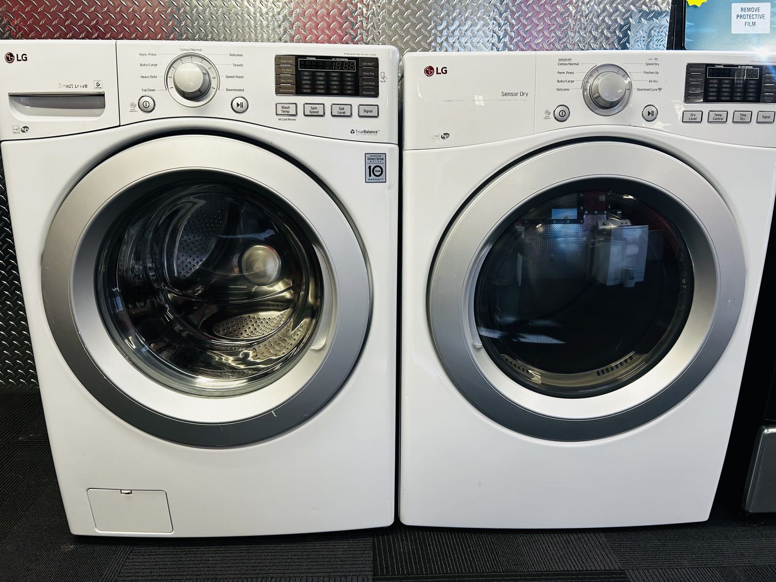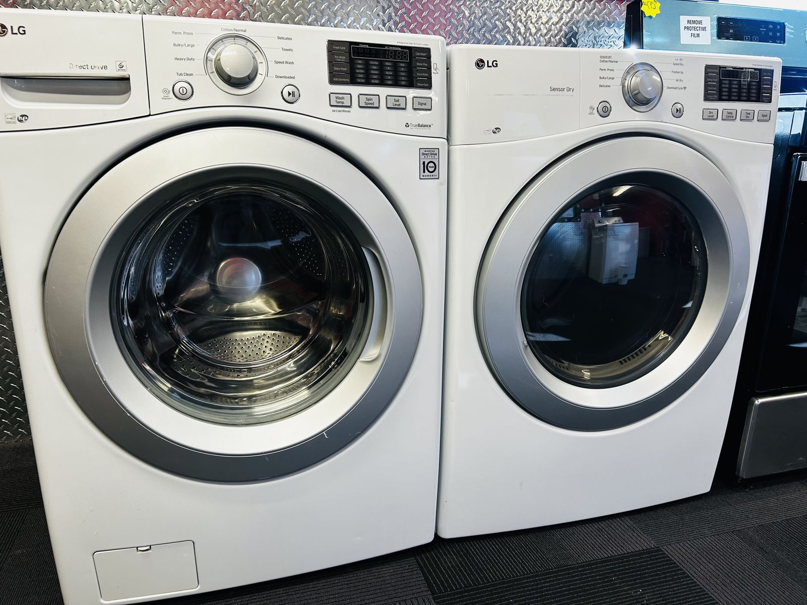 Lg washer inverter direct drive motion 6 energy star high efficiency stainless steel drum heavy duty cotton normal bulky large tub clean towels speed wash prewash delay wash extra rinse etc...Lg Electric Dryer sensor dry high efficiency stainless steel drum heavy duty cotton normal bulky large anti bacterial speed dry air dry wrinkle care damp dry time dry etc..They're in great working order. Clean. 45 day warranty. Delivery/installation available. Can be stacked if needed.