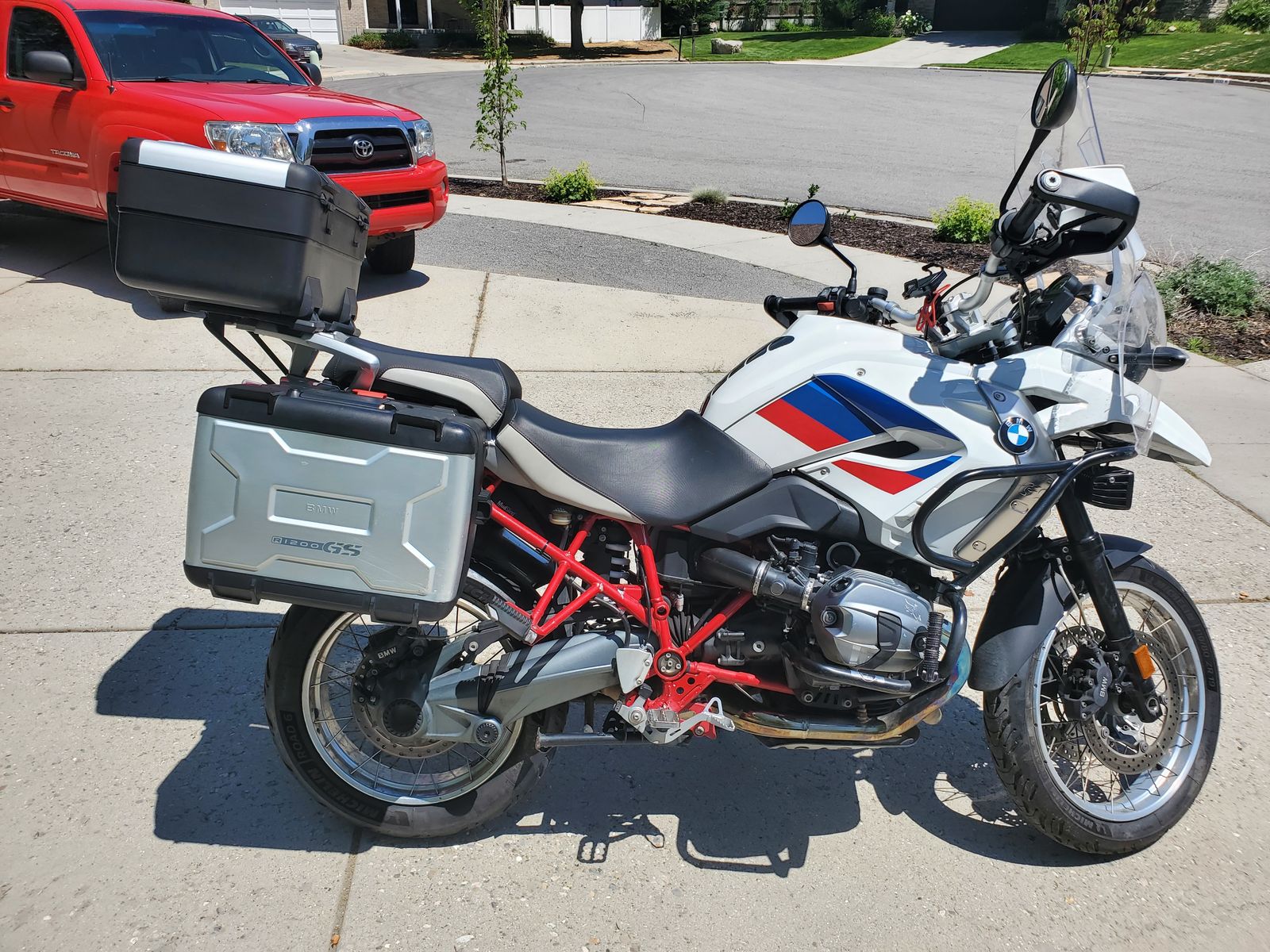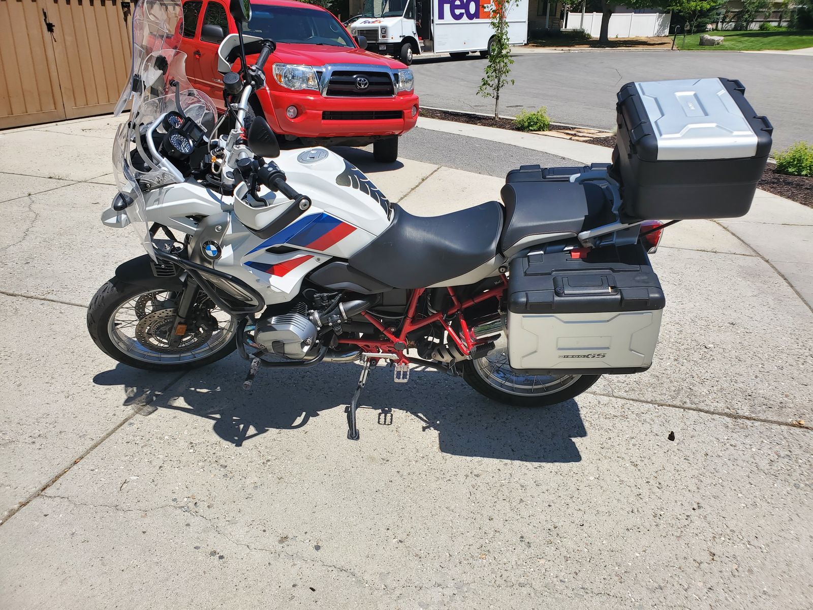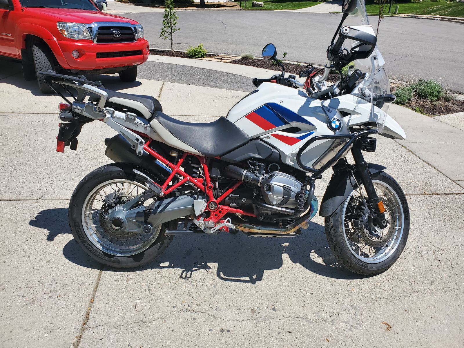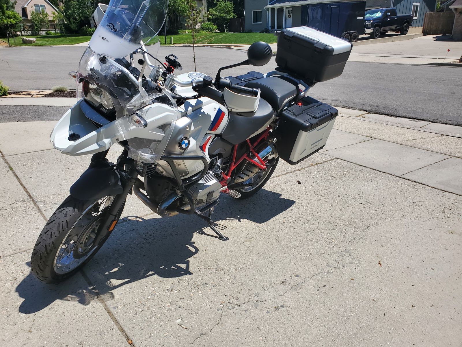 The bike rides well and is plenty fast for highway and canyon comfort. Two-up has been comfy with multiple suspension stiffness options. I currently have a mix of two windshields on the bike to keep additional wind off my body and have a second windshield that I'd include as well. All in all it's a great bike but I'd like the cash to put towards different hobbies.