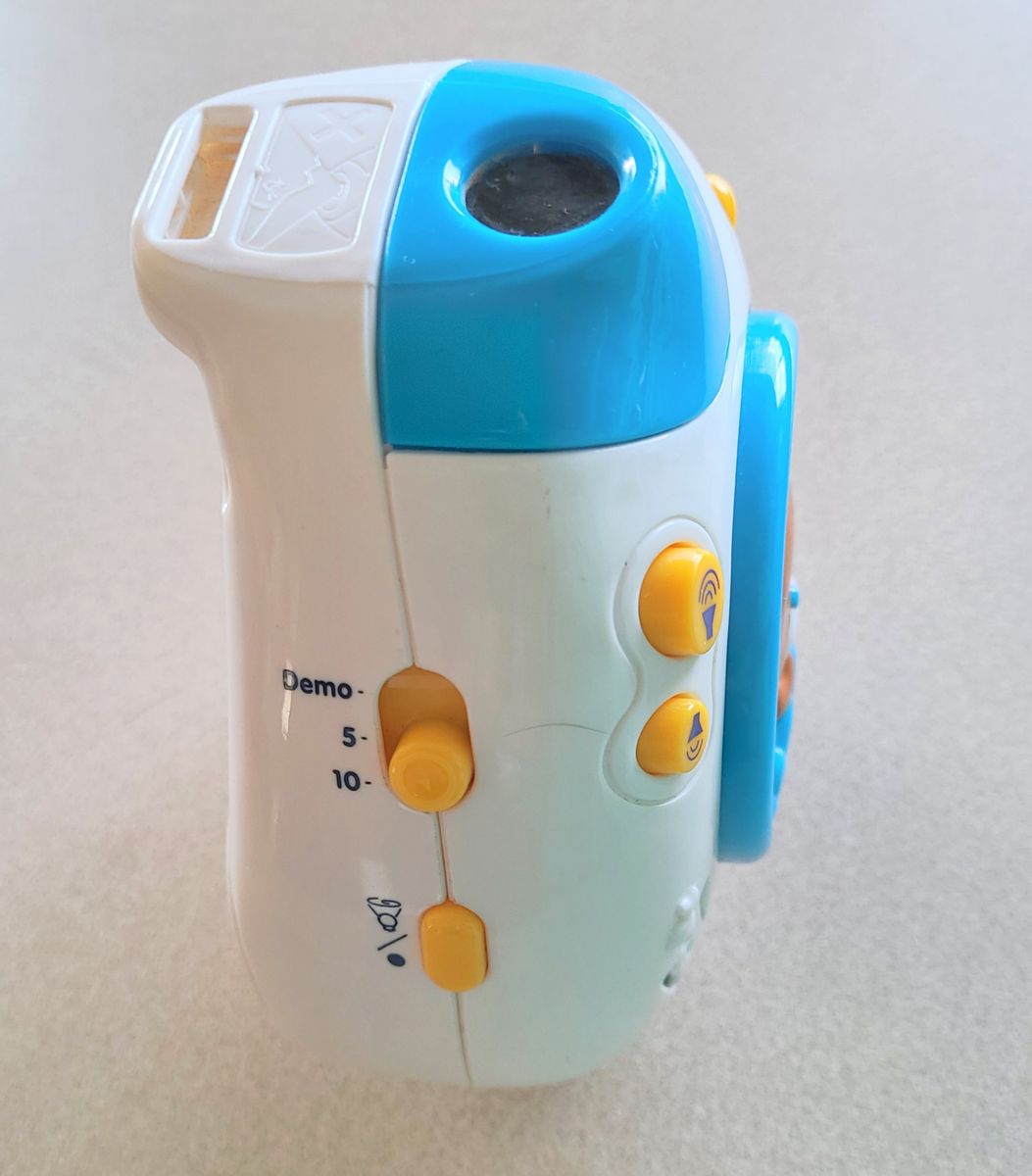 PayPalVtech Lullaby Bear Crib Projector plays music while soothing crib light projects light patterns onto ceiling. Plays 28 lullabies, melodies, sounds, & phrases in 5 or 10 minute intervals. It is missing the crib strap which could be replaced with a velcro strap.