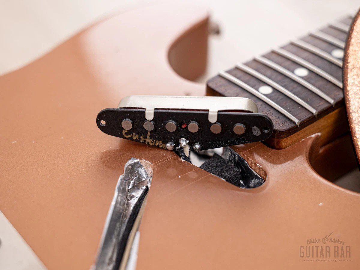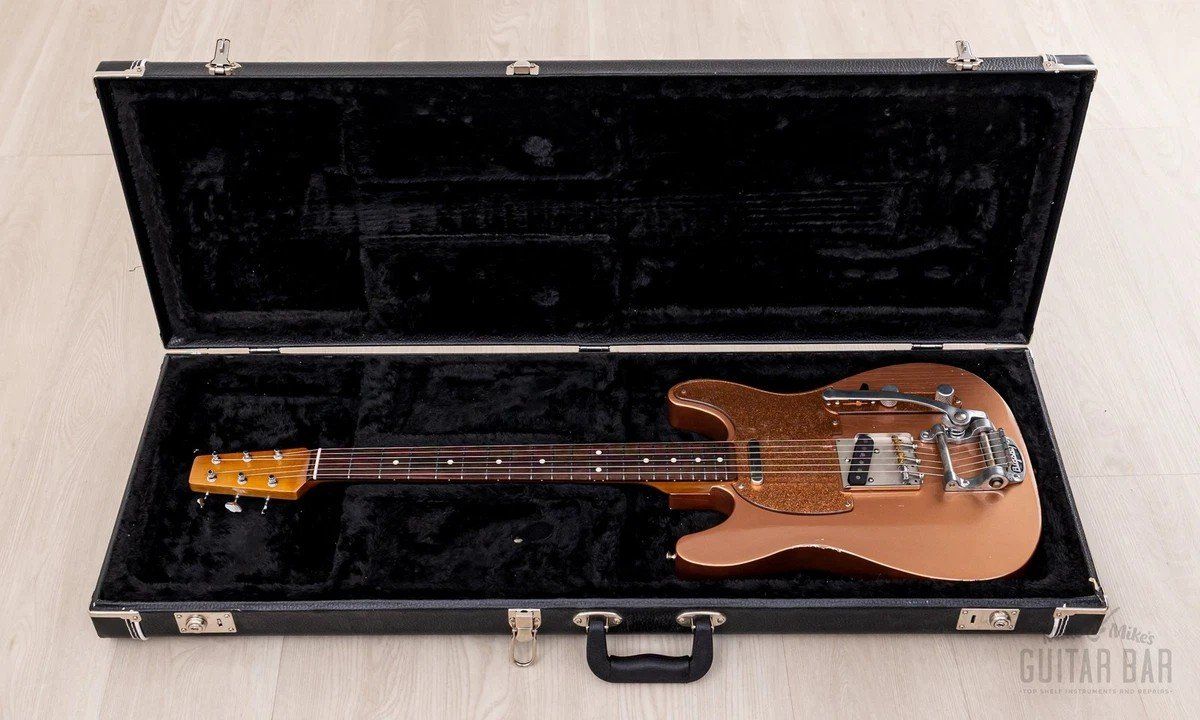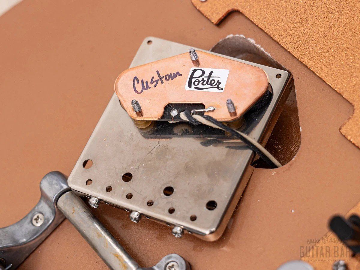 PayPalMJT double cut Telecaster body, Musickraft neck, Porter pickups, 4 way switch, Bigsby with Vibramate string spoiler, Callaham bridge, Gotoh open geared tuners, Fender hardshell case, all good parts, however, breaks high e strings at the Vibramate string spoiler, and will need a proper setup, offers entertained! Side note....not built by me. Thanks.