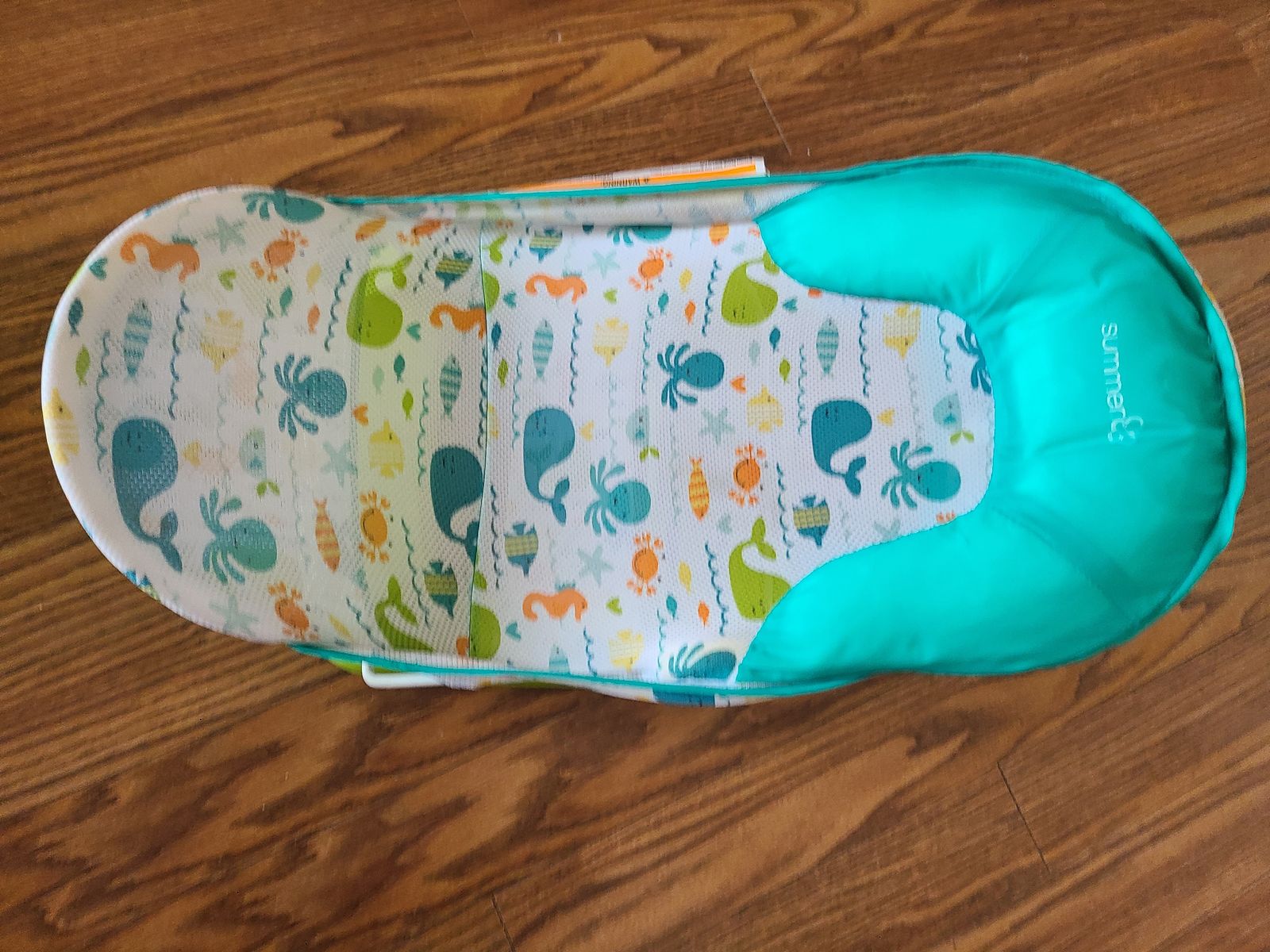 ADJUSTABLE RECLINE: With three positions, the Summer Deluxe Baby Bather helps you provide the support your baby needs for extra comfort while bathing. ULTIMATE CONVENIENCE: This versatile baby bather can be used in the sink or adult bath tub and folds flat for convenient storage when not in use. COMFORTABLE DESIGN: The secure design of this baby bather features a mesh sling that cradles yourbaby during bathtime, while the comfy head rest helps them stay in position for a steady soap down. ON THE GO: Featuring a compact fold design, the Summer Deluxe Baby Bather folds up completely flat making it a handy option for traveling with your little one. EASY TO CLEAN: The mesh newborn sling is made of machine washable fabric, which can be thrown in the laundry for easy maintenance.