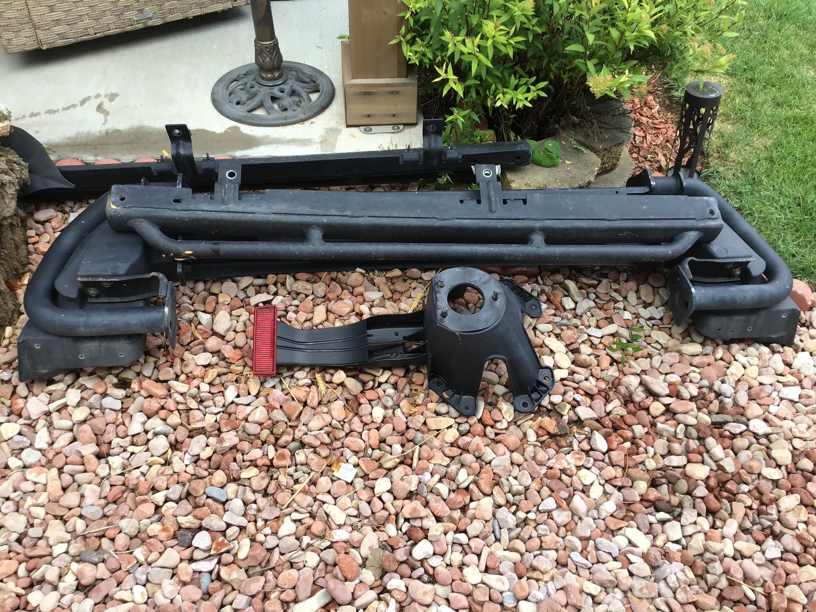 Rear bumper, rock sliders, third brake light with tire carrier, exhaust resonator with single to dual outlets, all off of 2018 Jeep Wrangler. Price is adjustable, make me an offer.