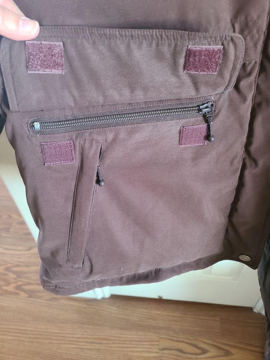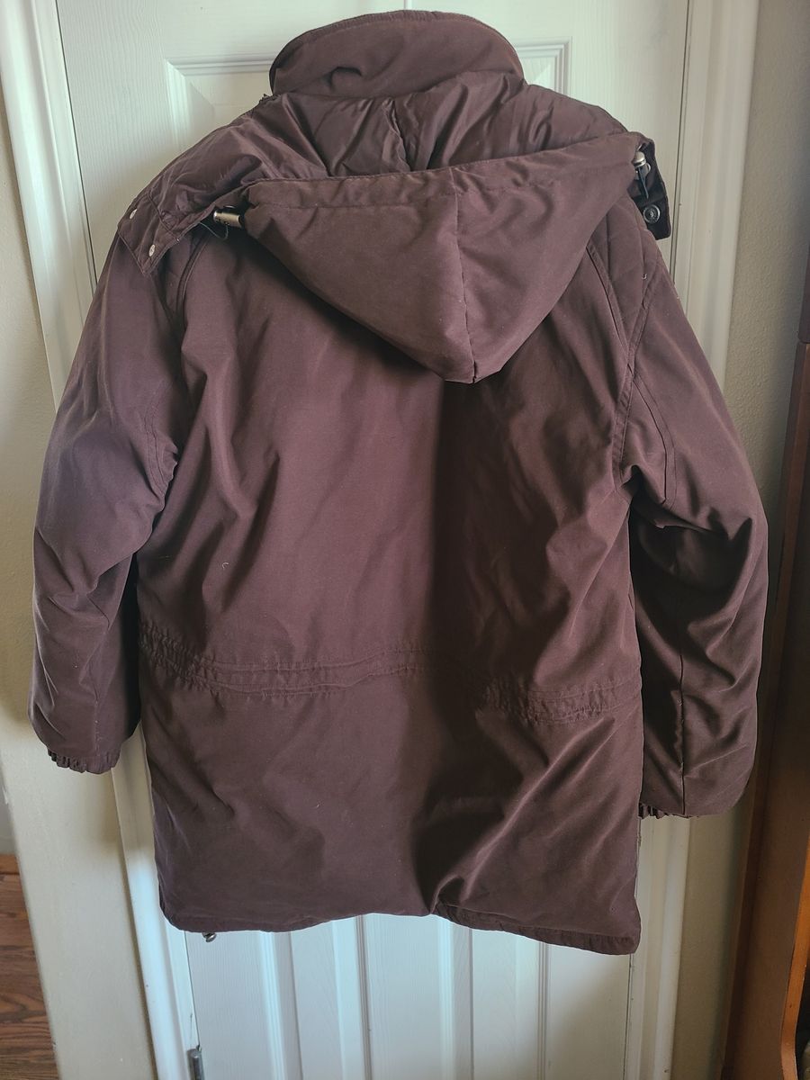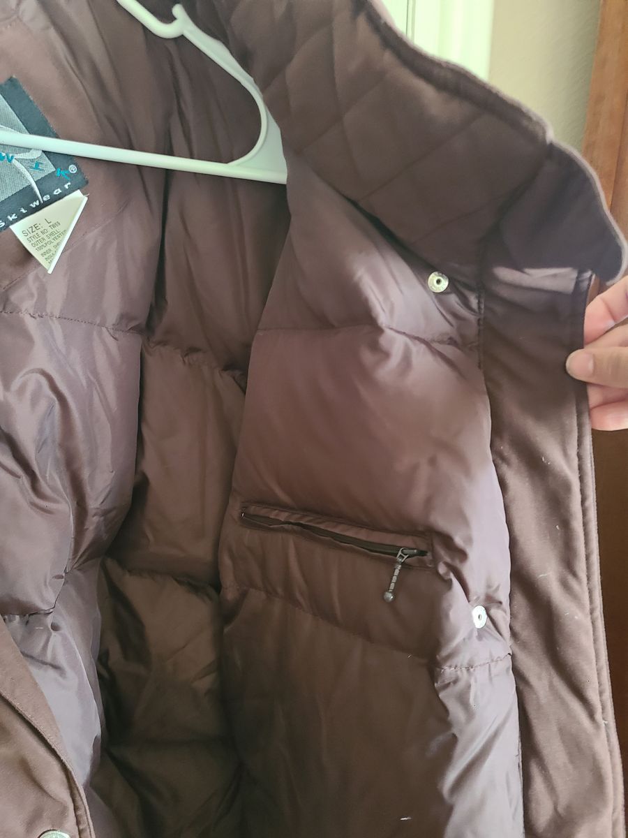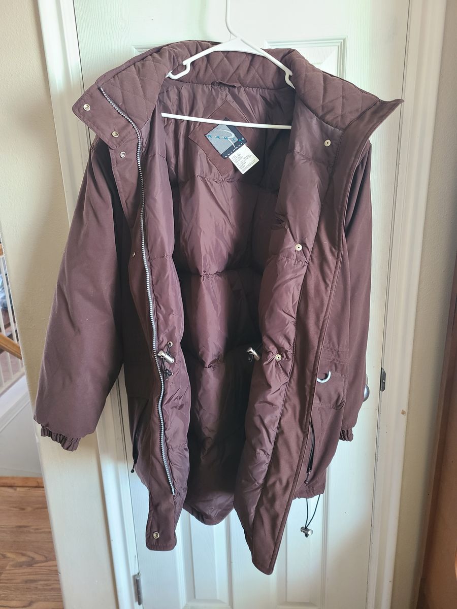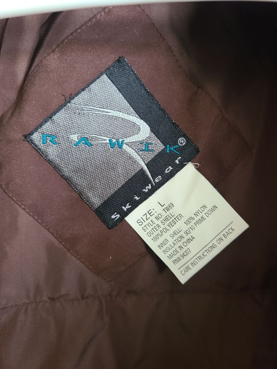 PayPalWomen's Large Brown Down Coat Rawik Skiwear coat with detachable hood, 5 zippered pockets