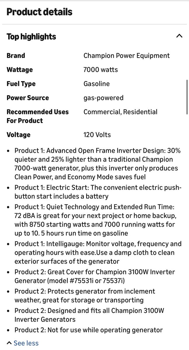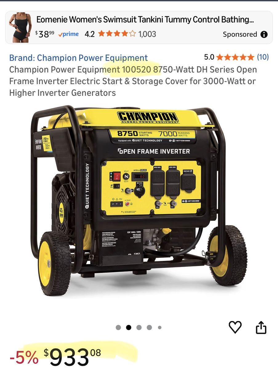 New Champion Power Equipment 100520 8750-Watt DH Series Open Frame Inverter Electric Start 73022552